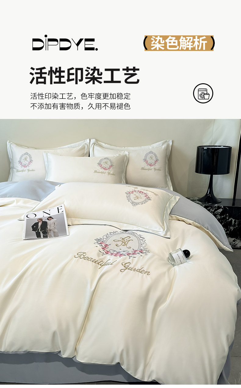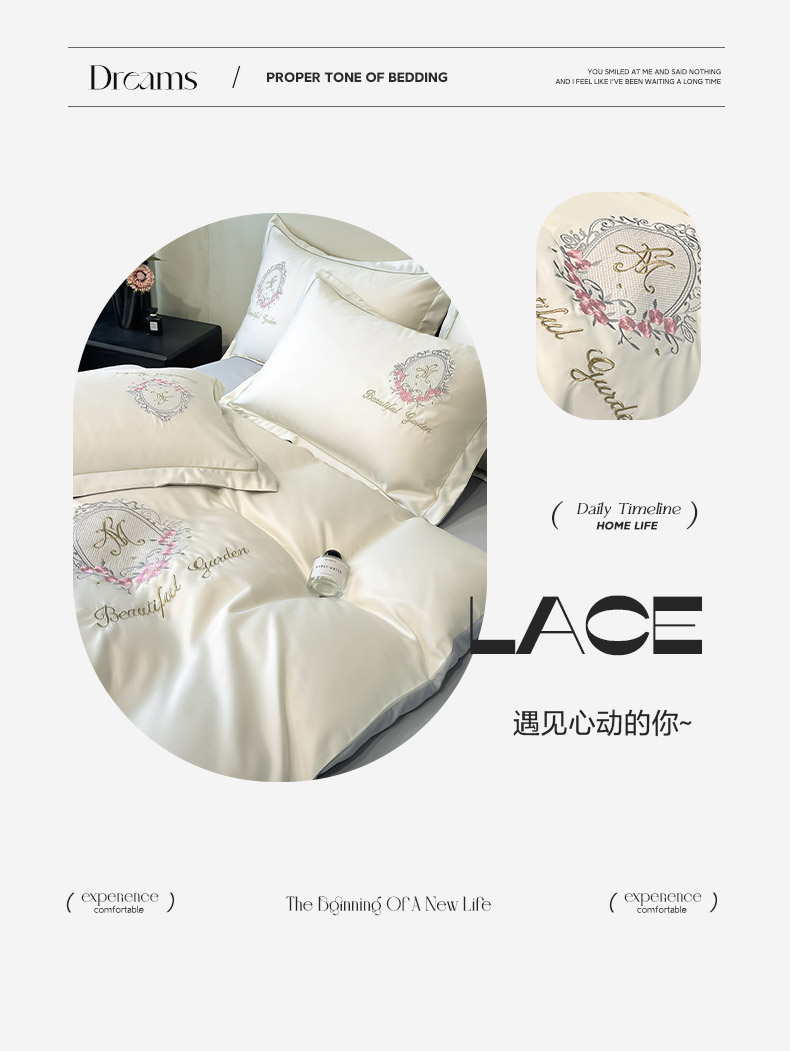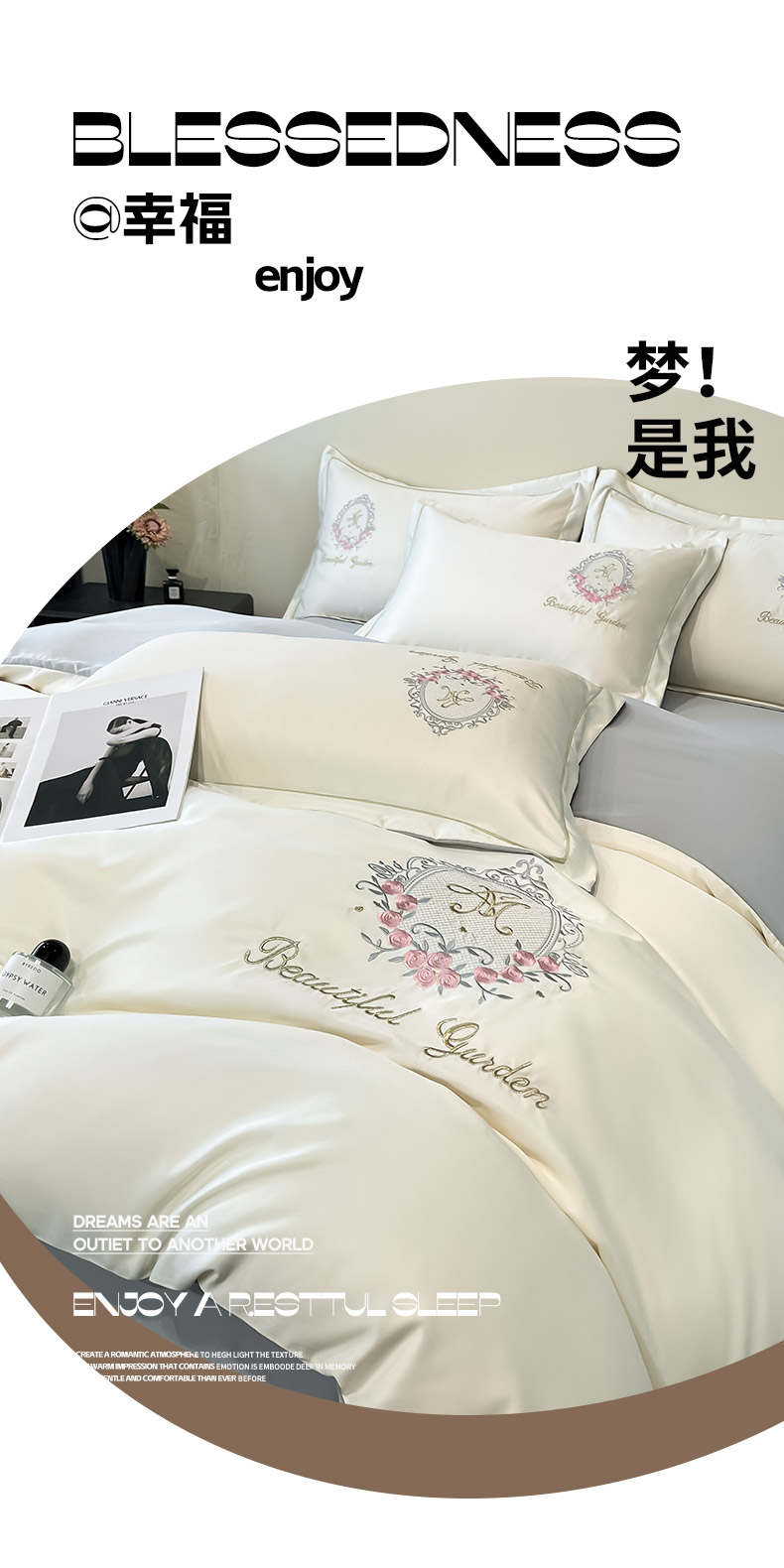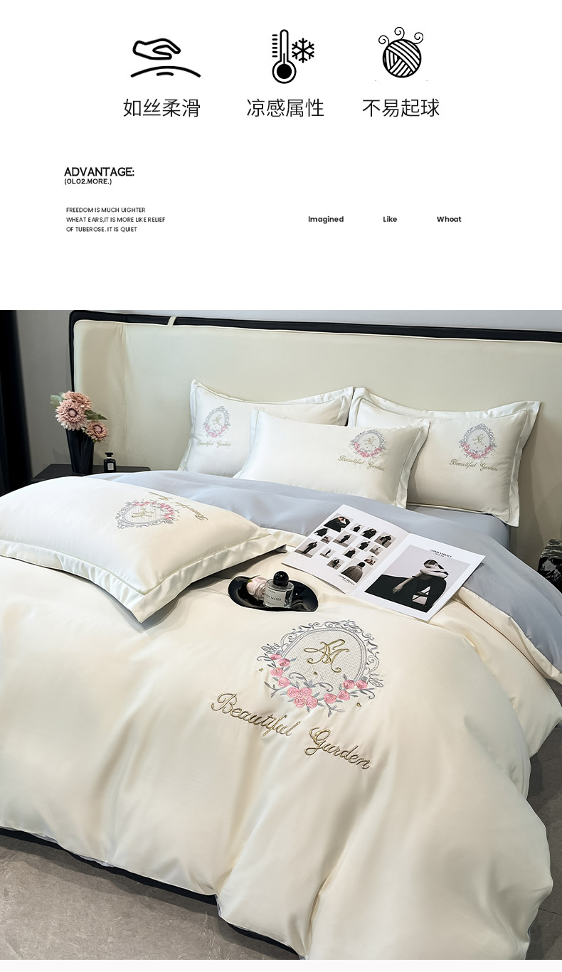 (总)金阳光家纺 2025新款莱赛尔天丝刺绣四件套,浅玉,黛蓝,浅豆沙,浅灰,浅米白粉,浅天蓝