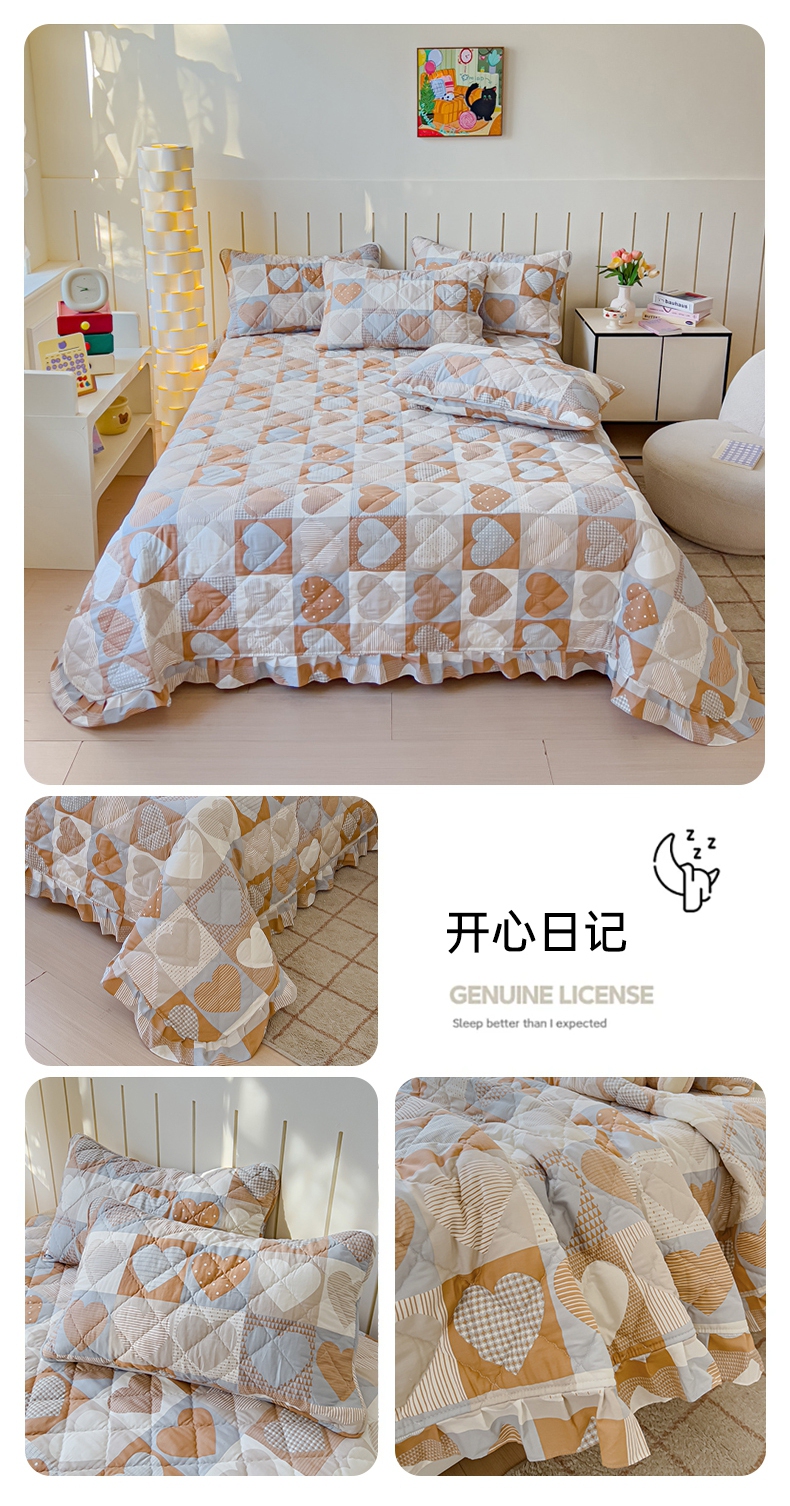 U品汇 2025新品A类全棉夹棉床盖纯棉100%棉绗缝三件套炕垫褥子13372 G瑞迪熊