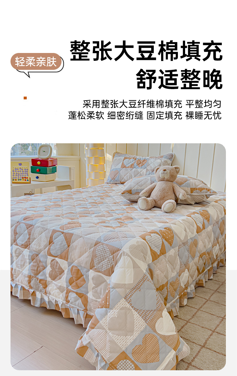 商品名称:U品汇 2025新品A类全棉夹棉床盖纯棉100%棉绗缝三件套炕垫褥子13372 G瑞迪熊