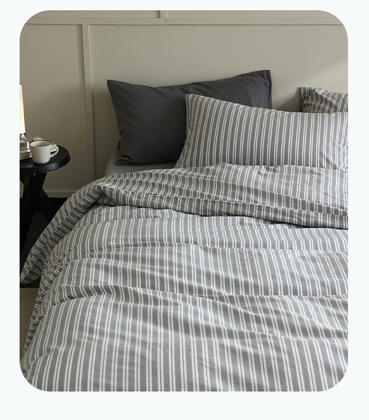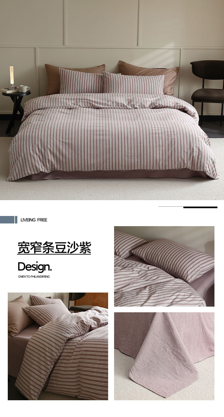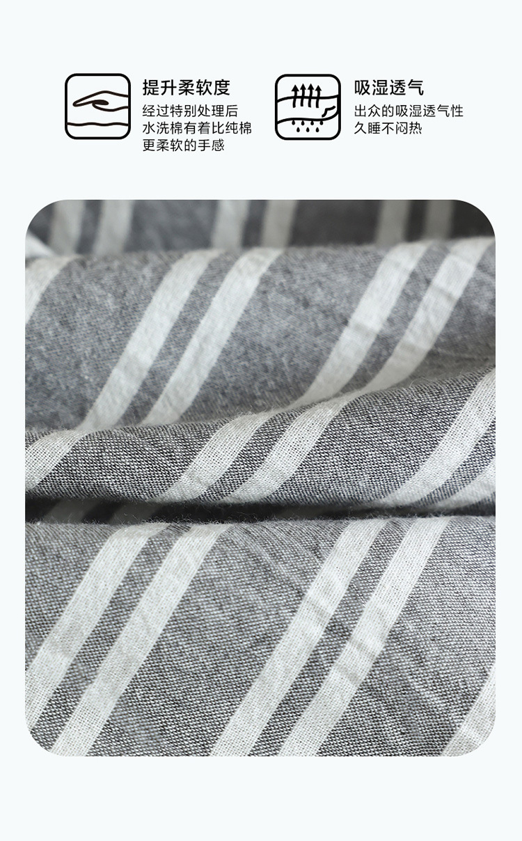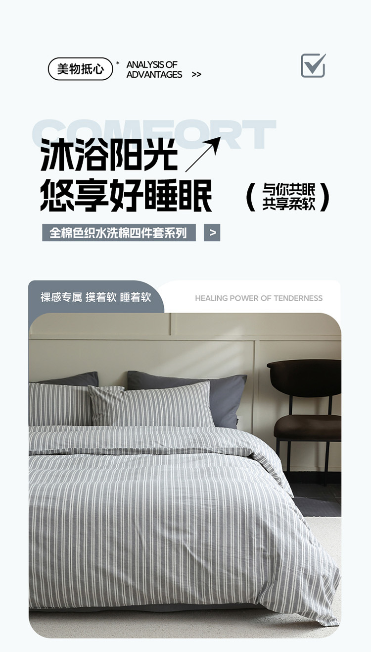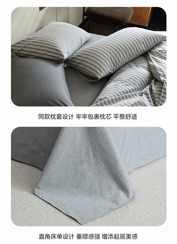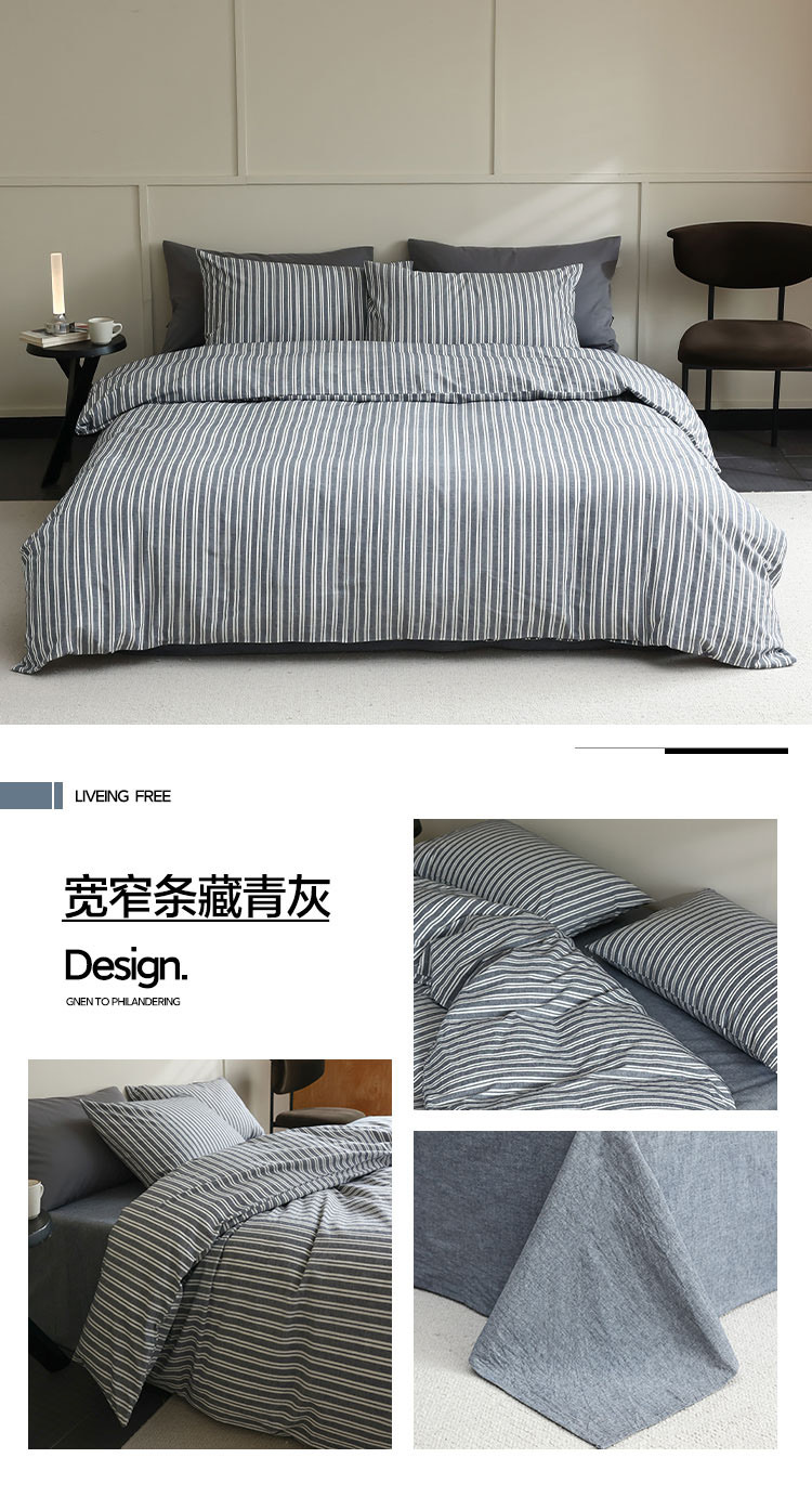 当前位置: 91家纺网 > 商品网购 > 床品套件 > 四件套 > 全棉普通四件套 > (总)良品汇馆 日式无印水洗棉四件套良品条纹纯棉床品套件条子全棉宽窄条件套