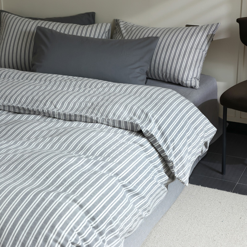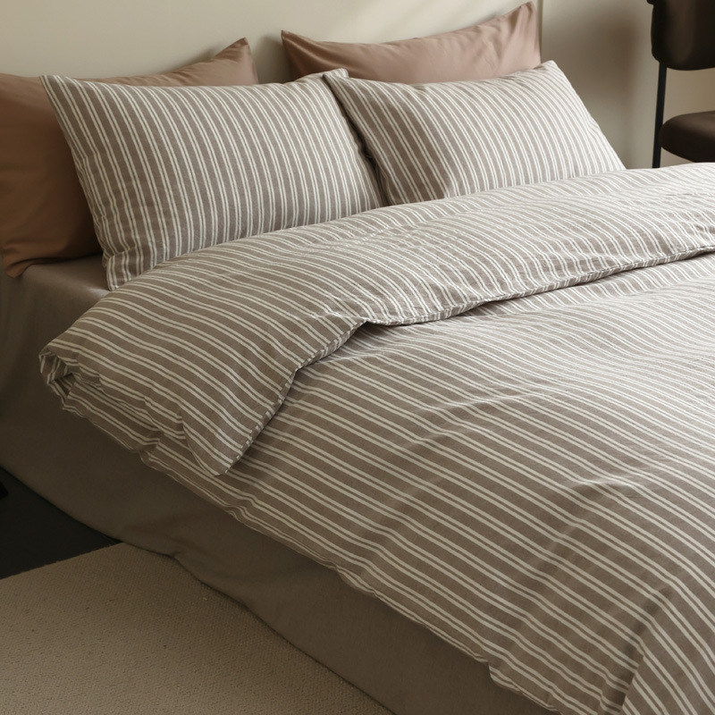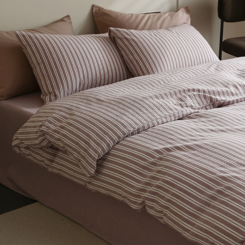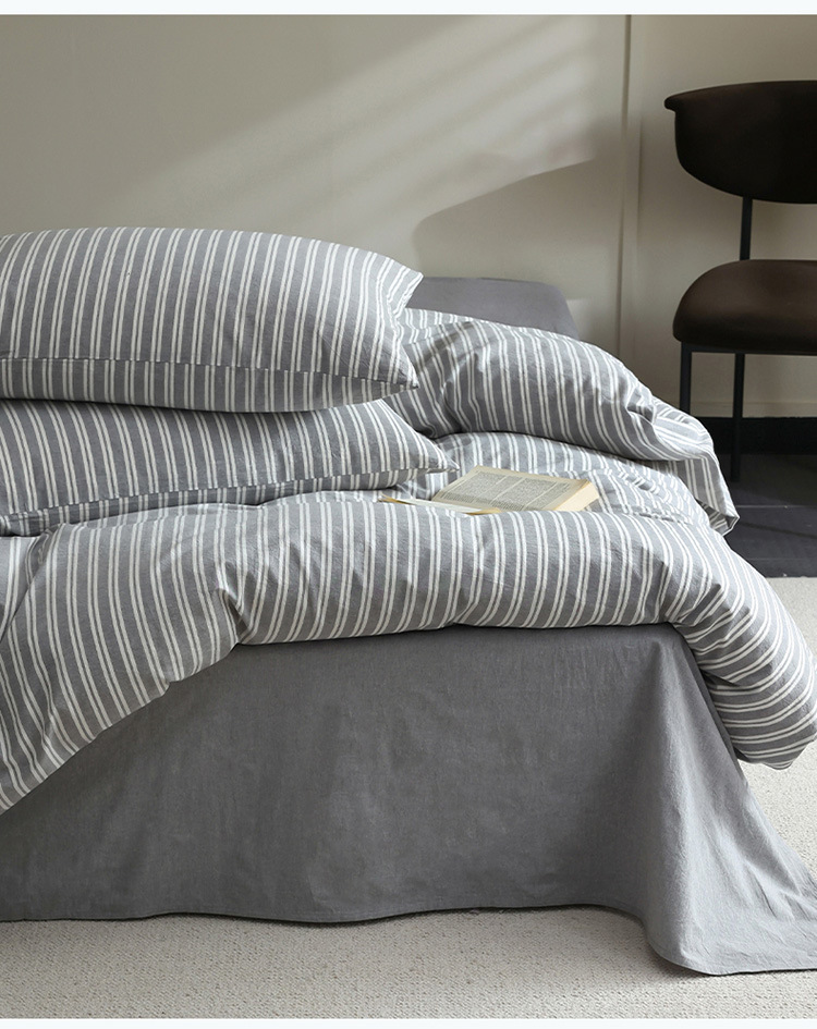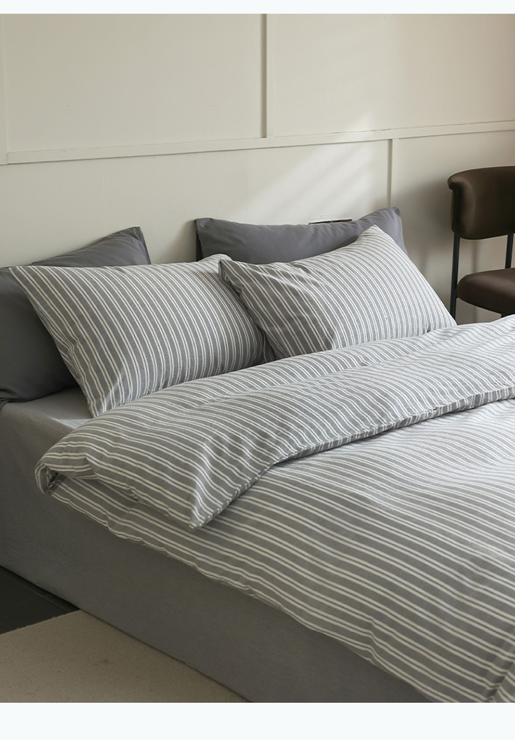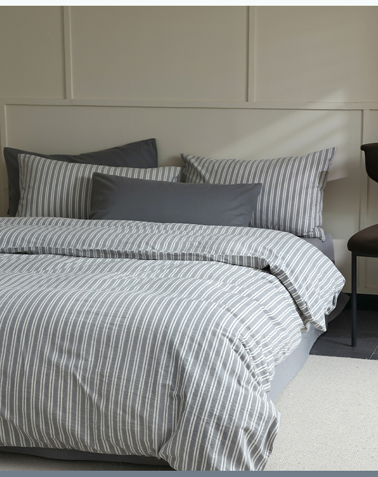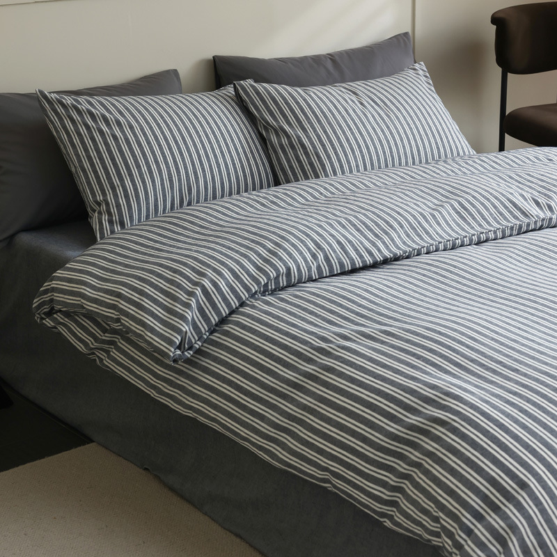 当前位置: 91家纺网 > 商品网购 > 床品套件 > 四件套 > 全棉普通四件套 > (总)良品汇馆 日式无印水洗棉四件套良品条纹纯棉床品套件条子全棉宽窄条件套