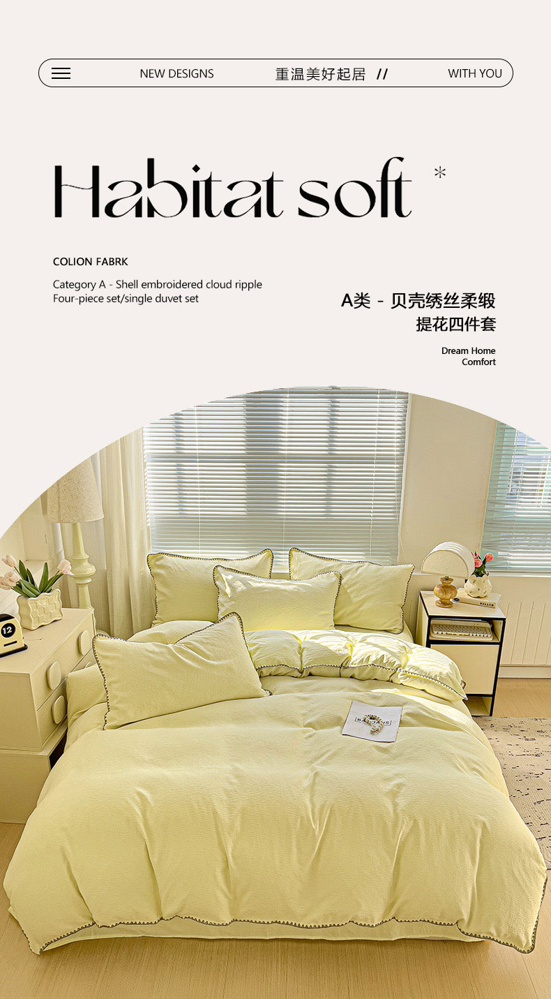 当前位置: 91家纺网 > 商品网购 > 床品套件 > 四件套 > 其它四件套 > 卡普二店 2025新款A类轻奢贝壳绣丝柔缎提花四件套 丝柔缎-浅黄