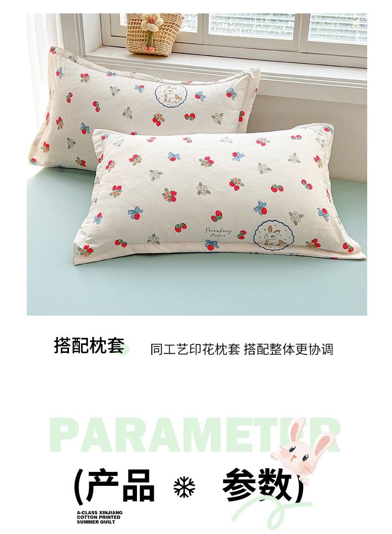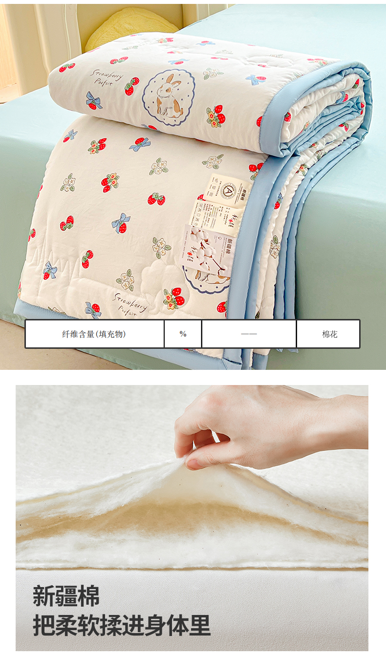 商品名称:2025新款A类印花手包边凌香新疆棉花夏被 凌香草莓兔
