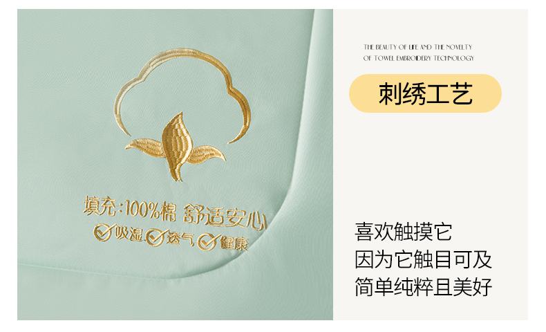 商品名称:新疆纯棉花被宽边绣花款全棉水洗棉夏凉被空调被薄款春秋被 千寻-薄荷绿