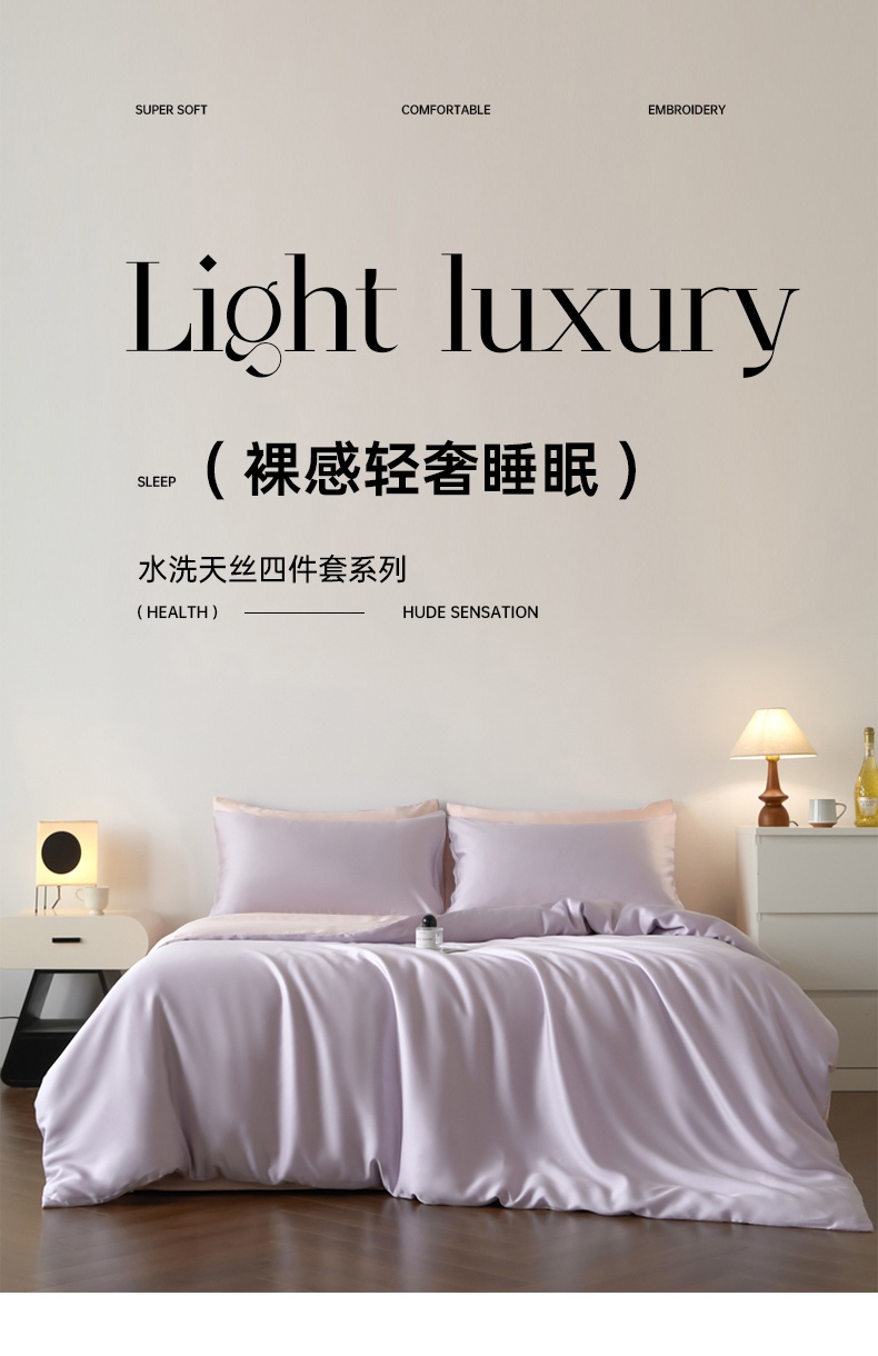 当前位置: 91家纺网 > 商品网购 > 床品套件 > 四件套 > 其它四件套 > 利欧 2025新款双拼水洗天丝四件套 双拼-淡紫+浅玉