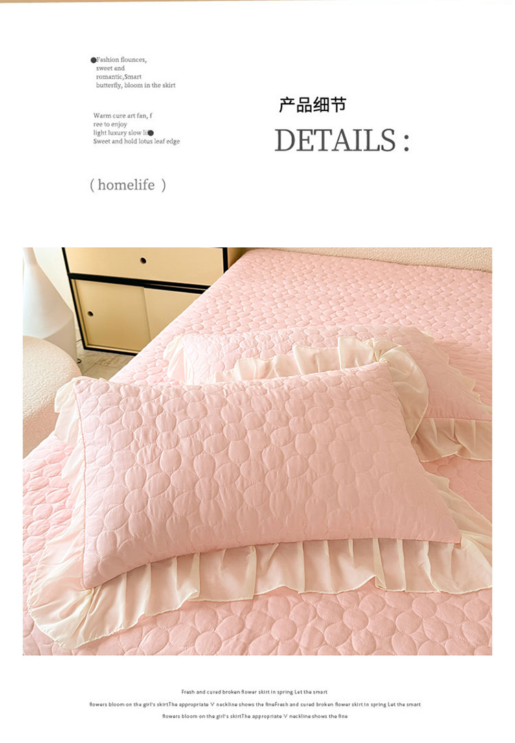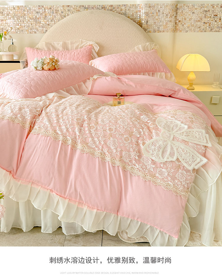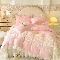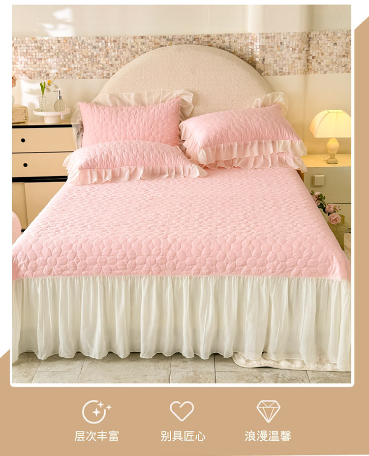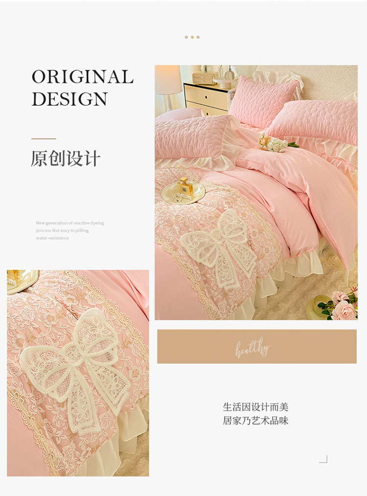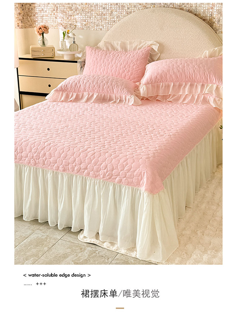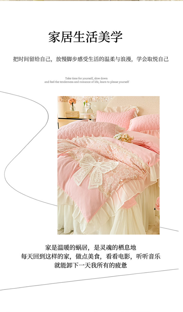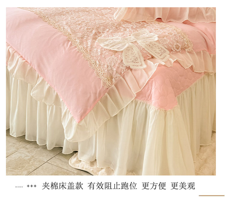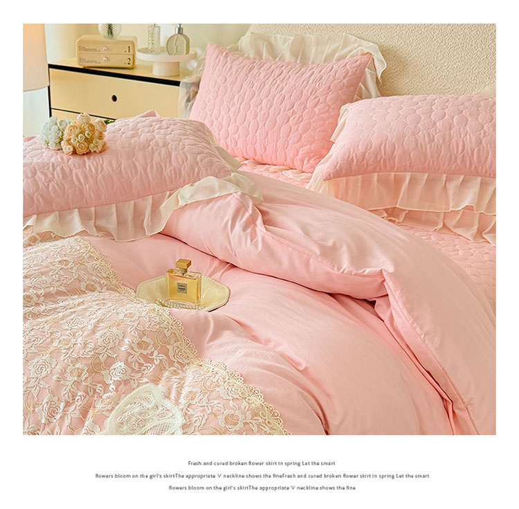商品名称:2025韩版法式公主风水洗棉立体花绣花床盖款四件套蕾丝床盖款夏被四件套 法派甜心—樱花粉