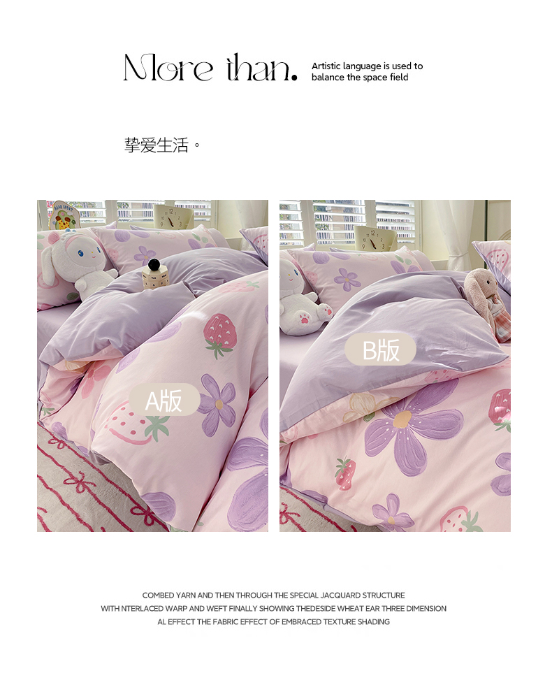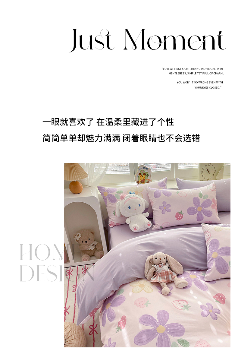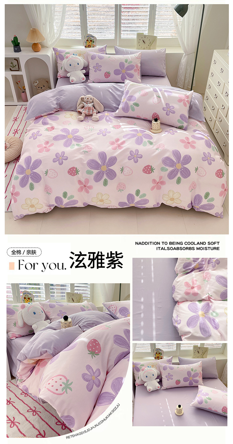 当前位置: 91家纺网 > 商品网购 > 床品套件 > 四件套 > 全棉普通四件套 > 宜家坊 2025热款全棉四件套学生床三件套单品床单床笠单被套印花小清新卡通碎花纯棉三四件套 泫雅紫