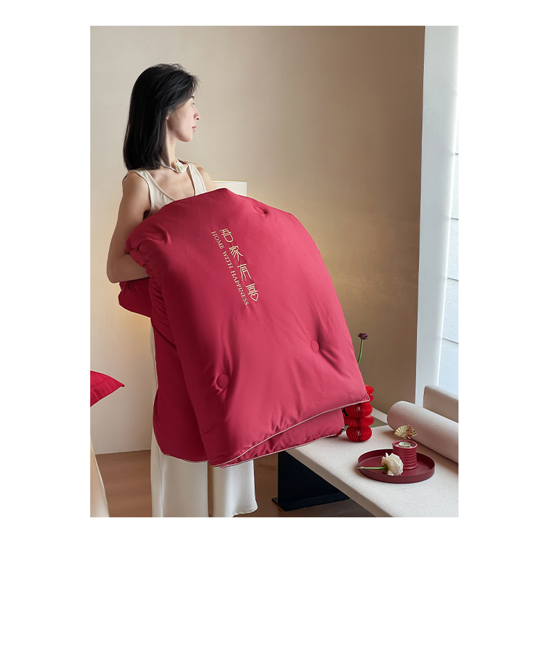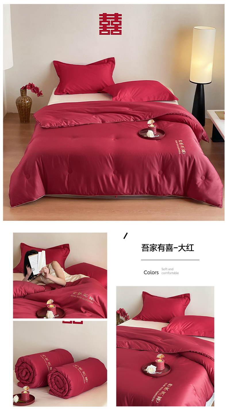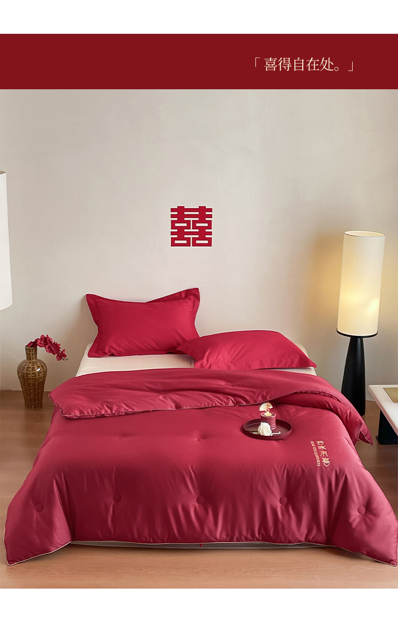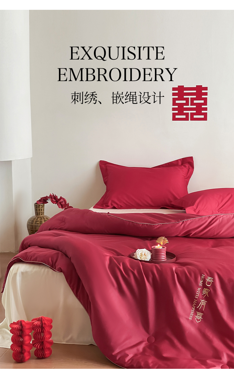 佳汐蓝 2025新款60S长绒棉刺绣婚嫁被-吾家有喜 吾家有喜-玫瑰红