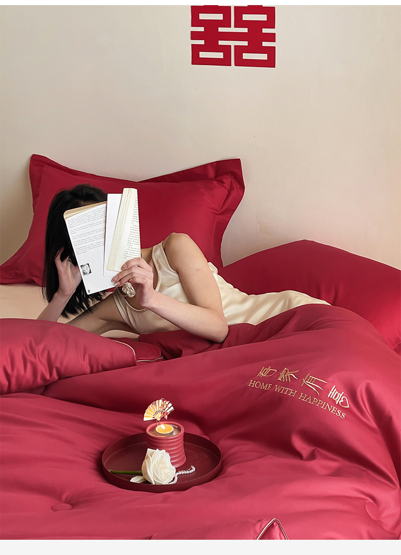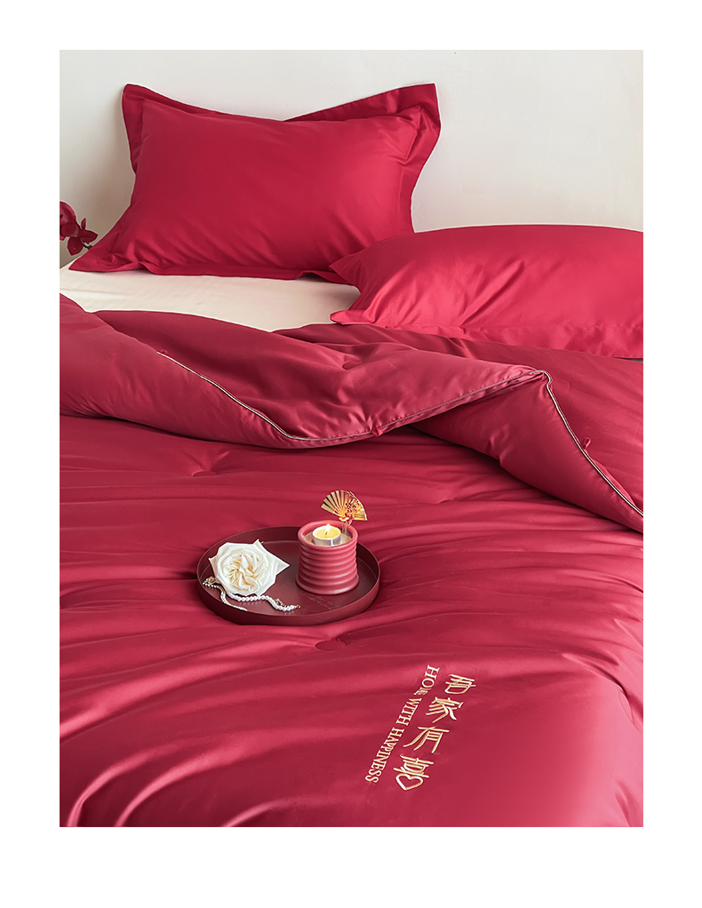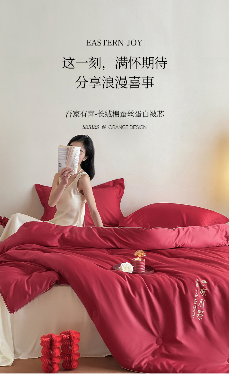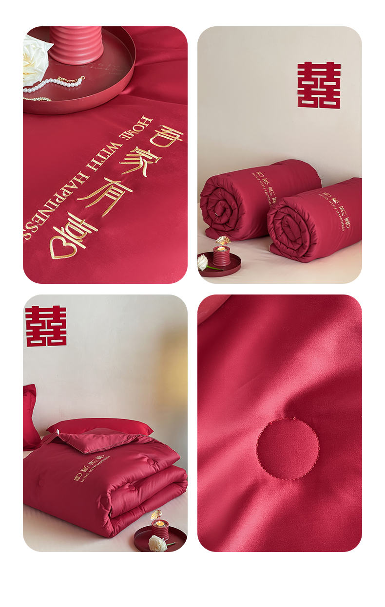 佳汐蓝 2025新款60S长绒棉刺绣婚嫁被-吾家有喜 吾家有喜-玫瑰红