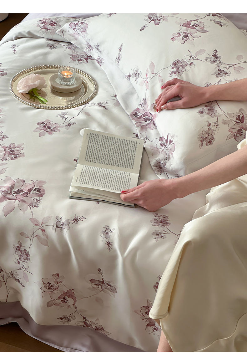(总)佳汐蓝家纺 2025 春夏新品60支兰精天丝数码印花四件套-小苍兰花语,白,粉,蓝
