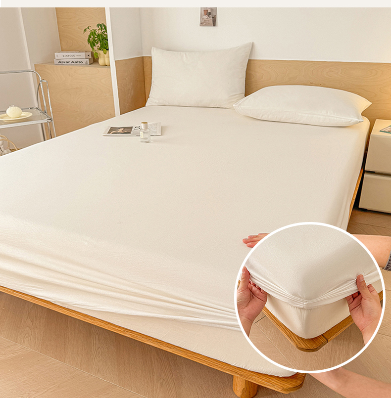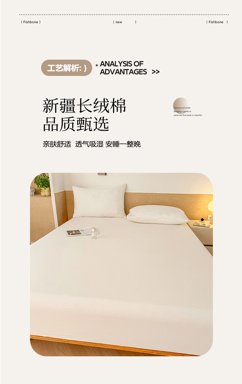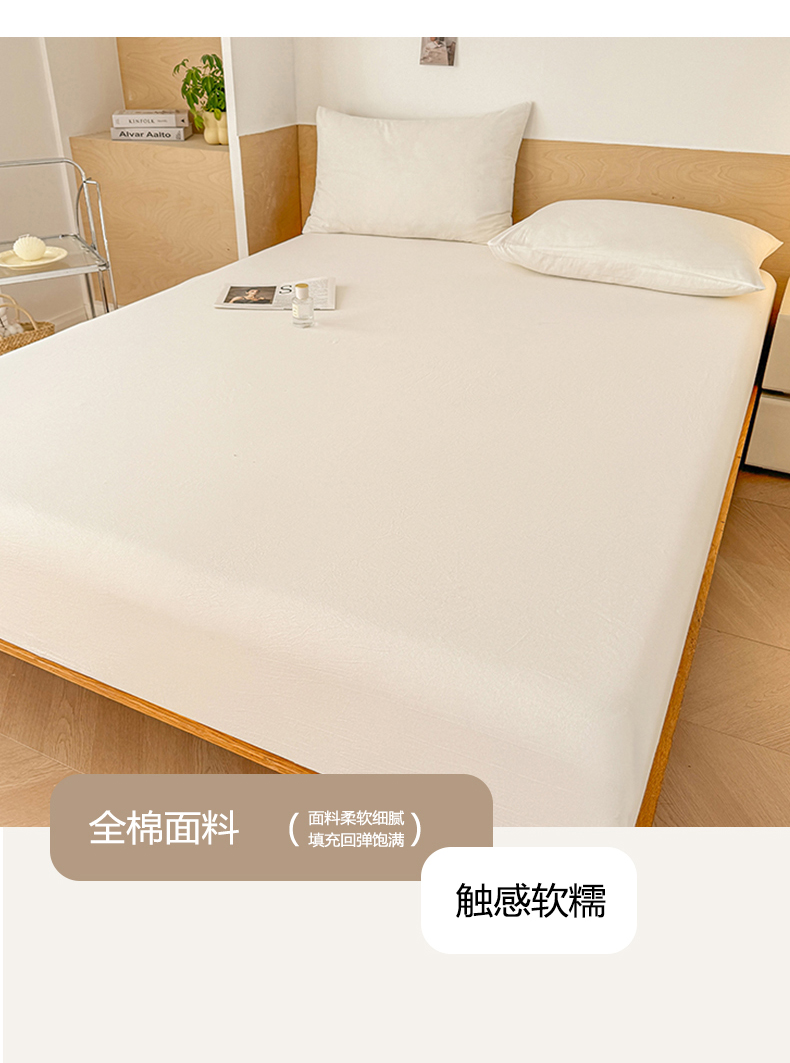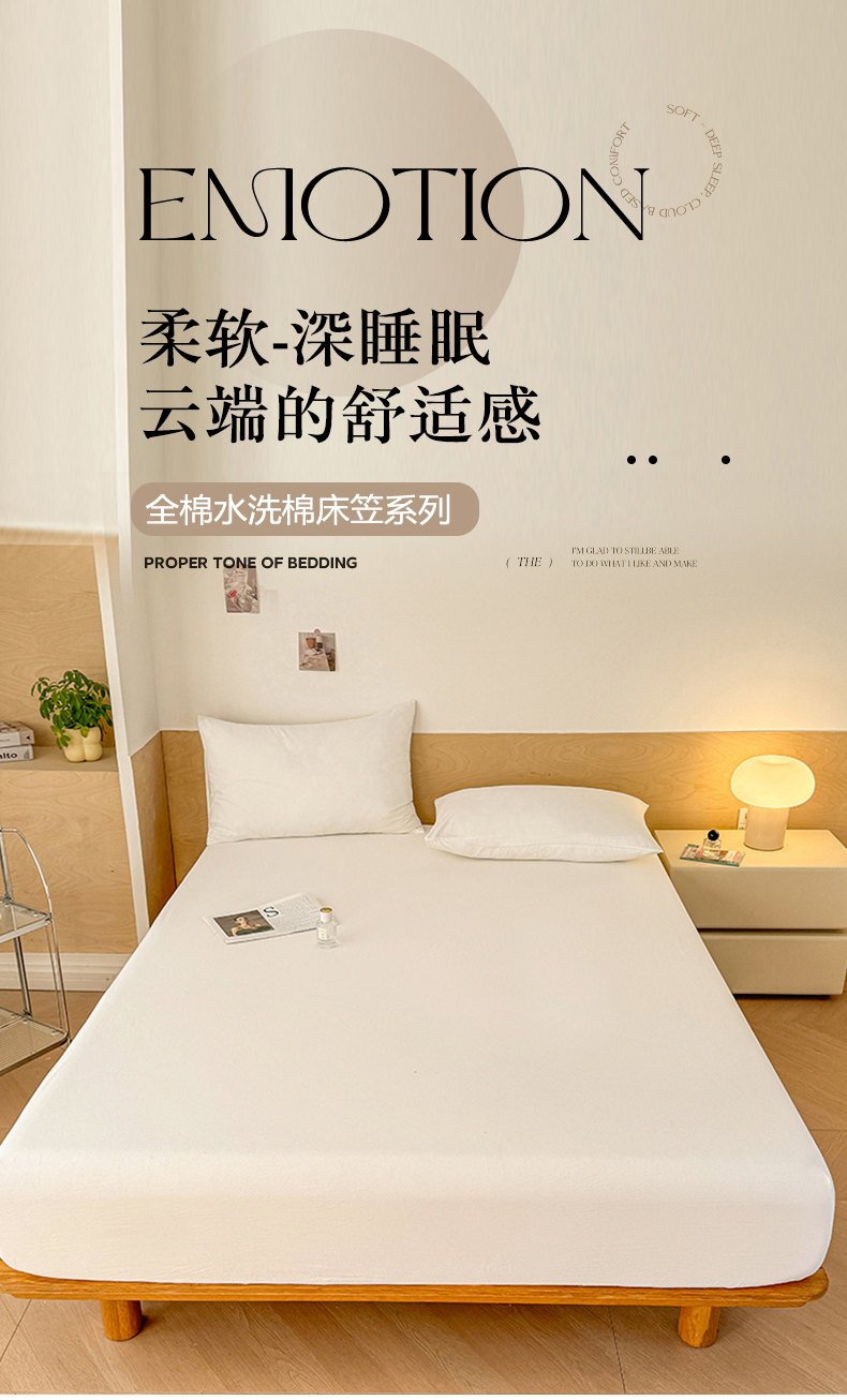 • 91家纺网 家纺一手货源 找家纺 晓时候 2025新款100%全棉色织水洗棉床笠全棉床笠纯棉床笠 本白