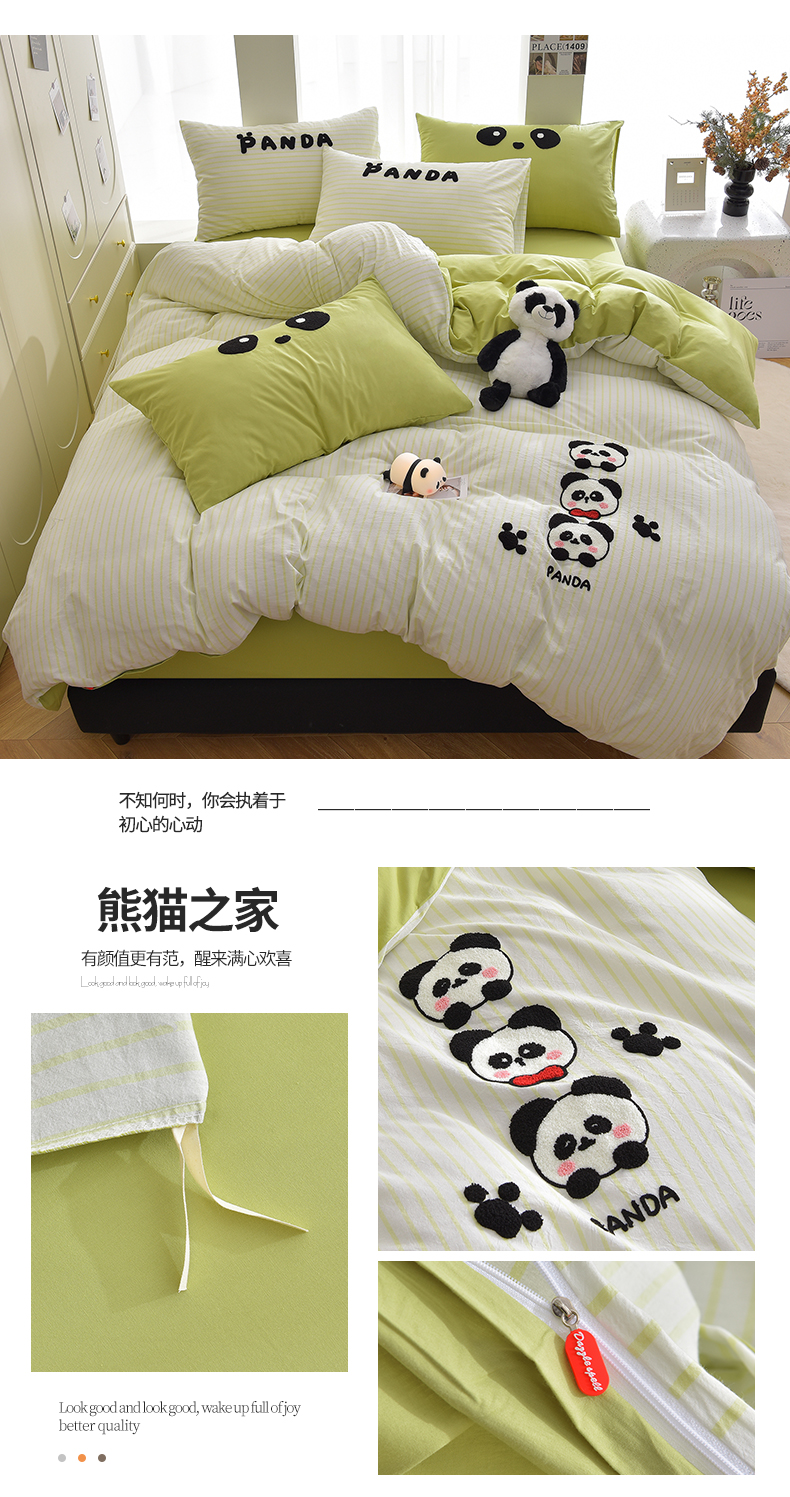 商品名称:炫拼家纺 2025新款卡通多巴胺A类全棉40支水洗棉毛巾绣四件套 熊猫之家