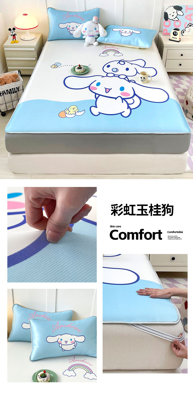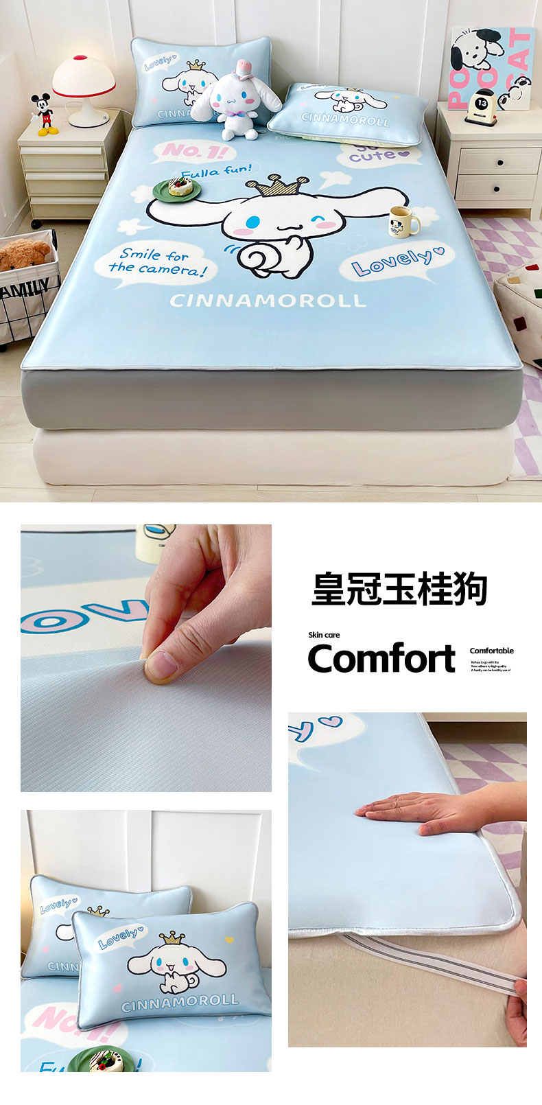 (总)米帛家纺 2024新款大版三丽鸥A类凉感丝乳胶凉席 床笠款,樱桃凯蒂猫,大脸凯蒂猫,好学库洛米,滑板帕恰狗,旅行玉桂狗,绿色库洛米,气球玉桂狗,巧克力库洛米,爆米花帕恰狗