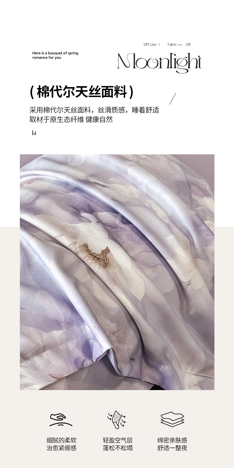 商品名称:金梦拉家纺 2025新款100%棉代尔天丝莱赛尔四件套 秘境咖