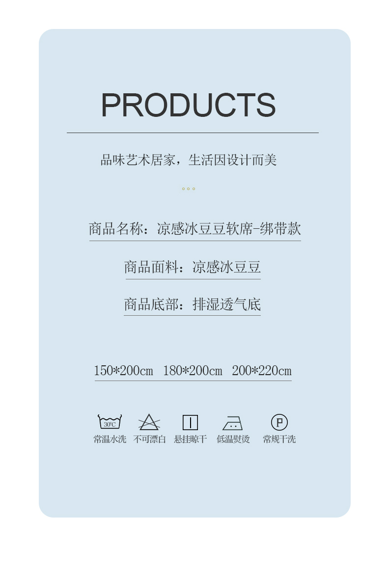 商品名称:席万佳 2025新款A类高克重凉感冰豆豆凉席软席子凉席三件套-绑带款 爱心-蓝