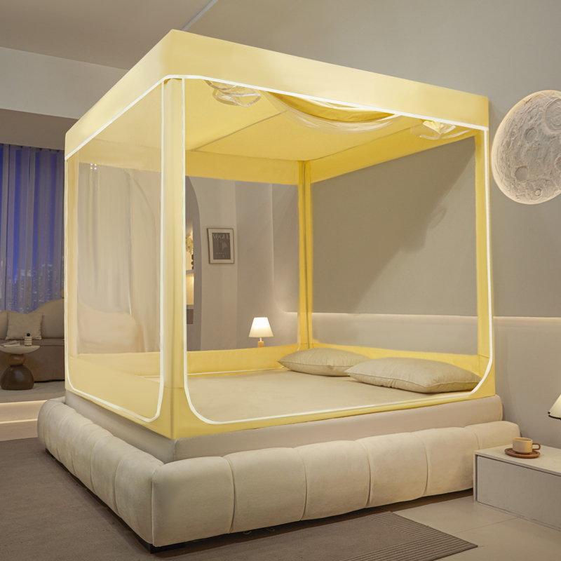 商品名称:兆星家纺 2025新款内穿带布帘蚊帐 纯色款 纯色-米黄(含帘)