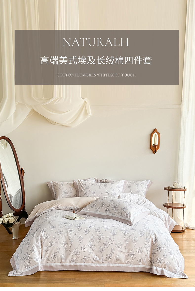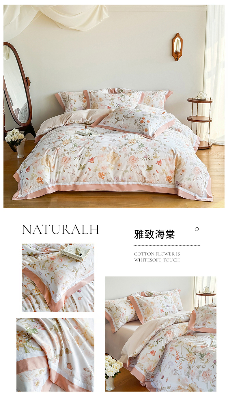 商品名称:巧玲珑 2025新款60支A类进口数码印花美式双拼四季款长绒棉四件套 和风絮语