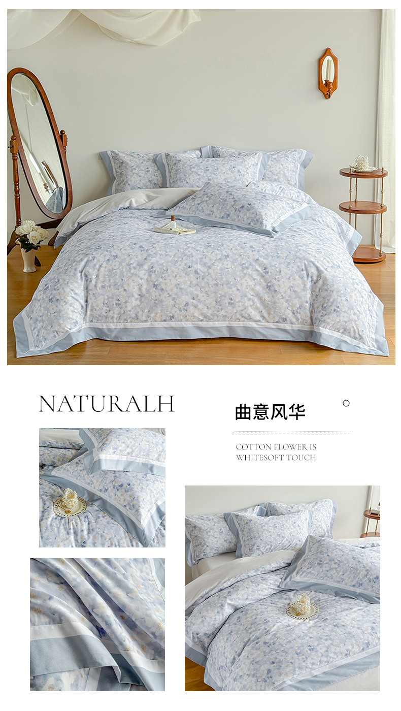 当前位置: 91家纺网 > 商品网购 > 床品套件 > 四件套 > 长绒棉四件套 > 巧玲珑 2025新款60支A类进口数码印花美式双拼四季款长绒棉四件套 相思坞