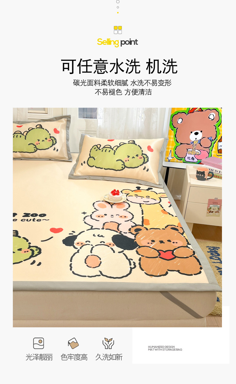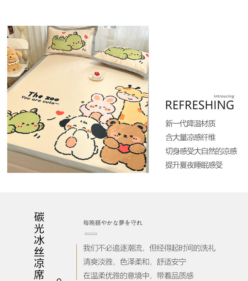 商品名称:柒月 2025新款大版数码印花碳光冰丝席 动物世界