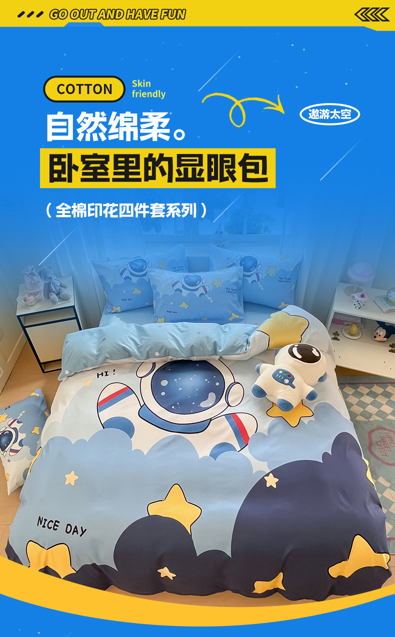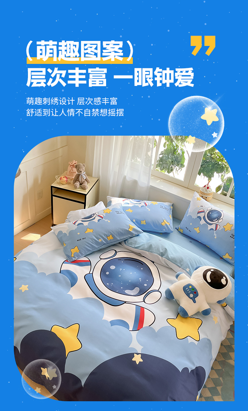 当前位置: 91家纺网 > 商品网购 > 床品套件 > 四件套 > 全棉普通四件套 > 博雅 2025新款纯棉宇航员四件套 梦想宇航员