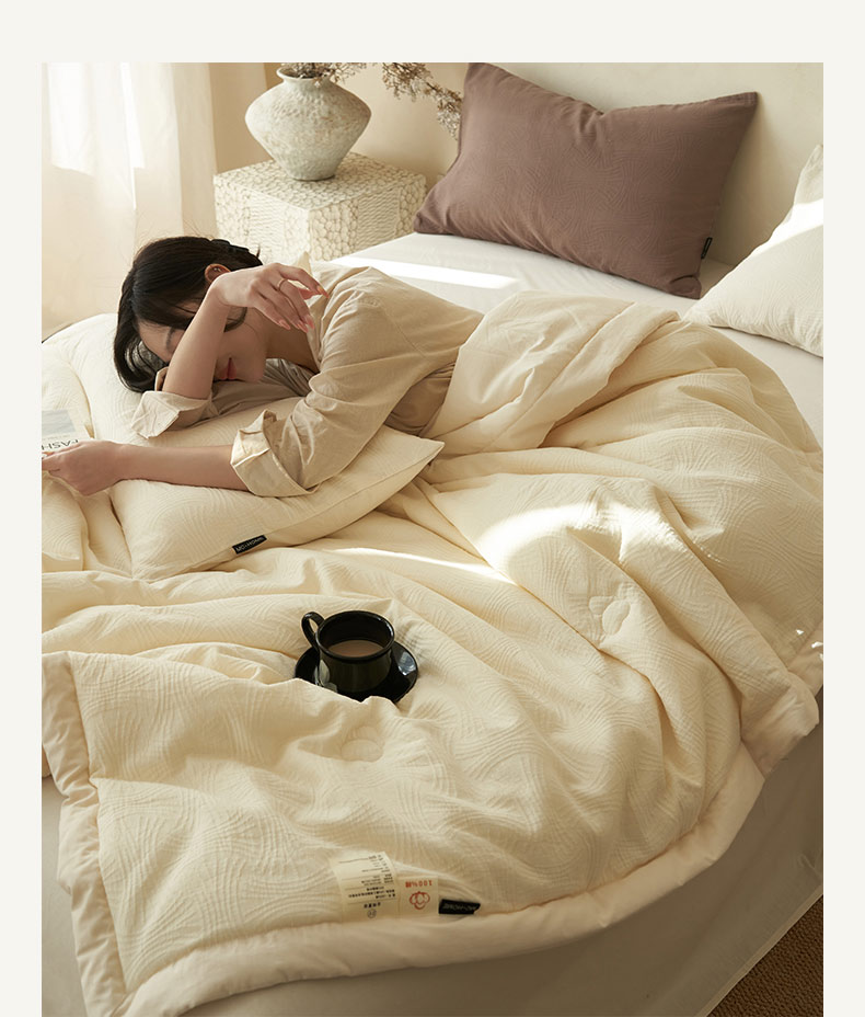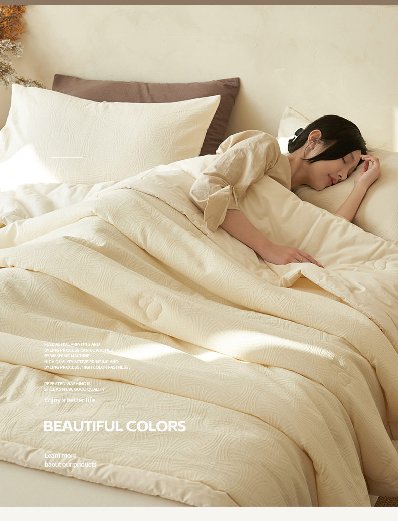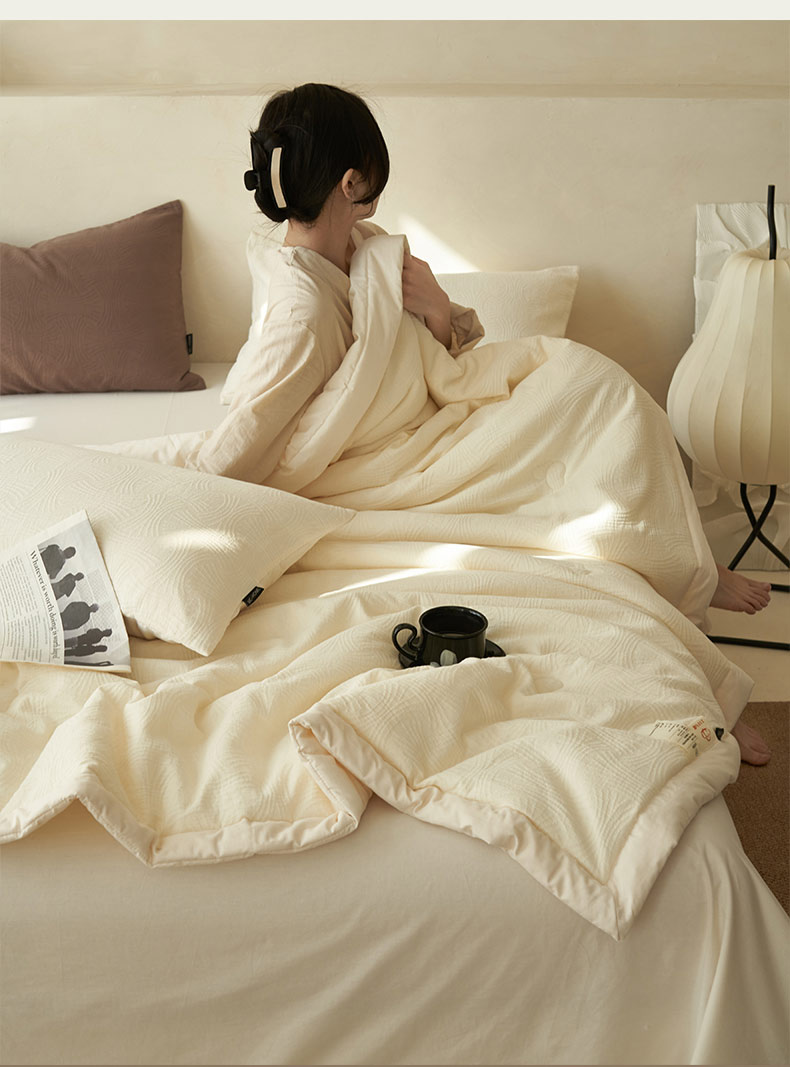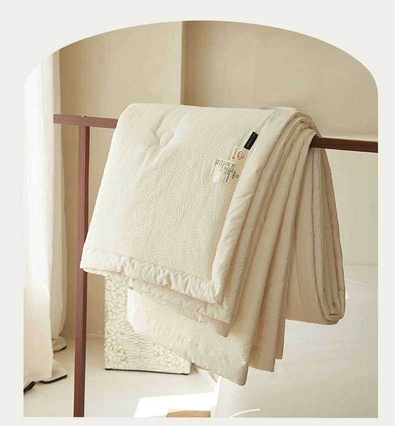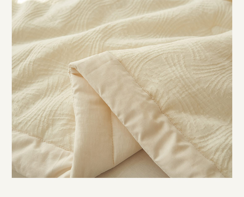 • 91家纺网 家纺一手货源 找家纺 寐绸家纺 2025新款纯棉水洗棉三层提花大豆纤维夏被四件套 线球纹夏被-本白