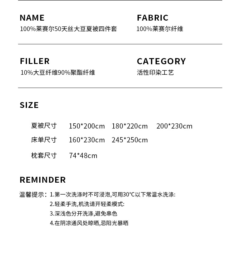 200*230cm夏被 床单款四件套 | ¥155.00 |