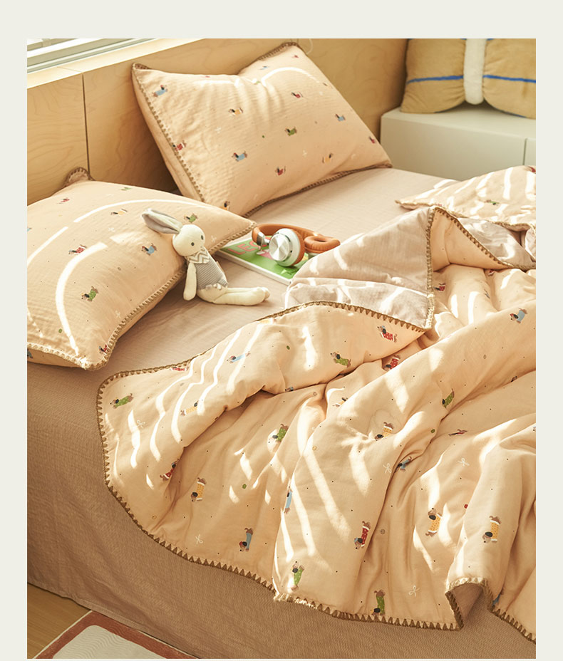 寐绸家纺 2025新款纯棉双层纱印花大豆纤维夏被四件套 双层纱-腊肠狗