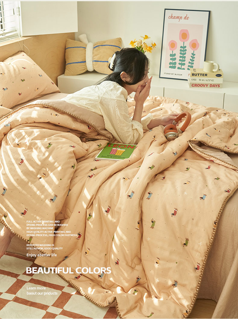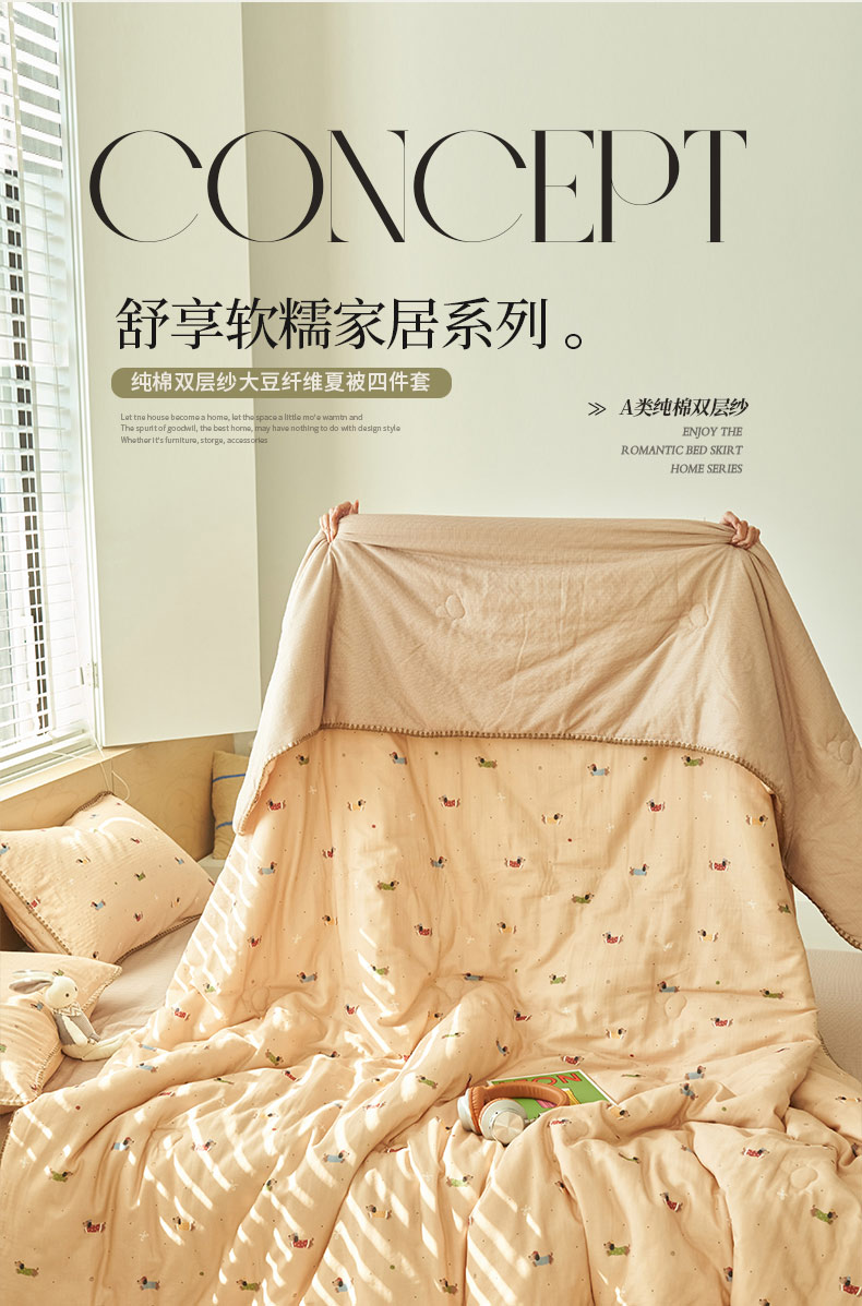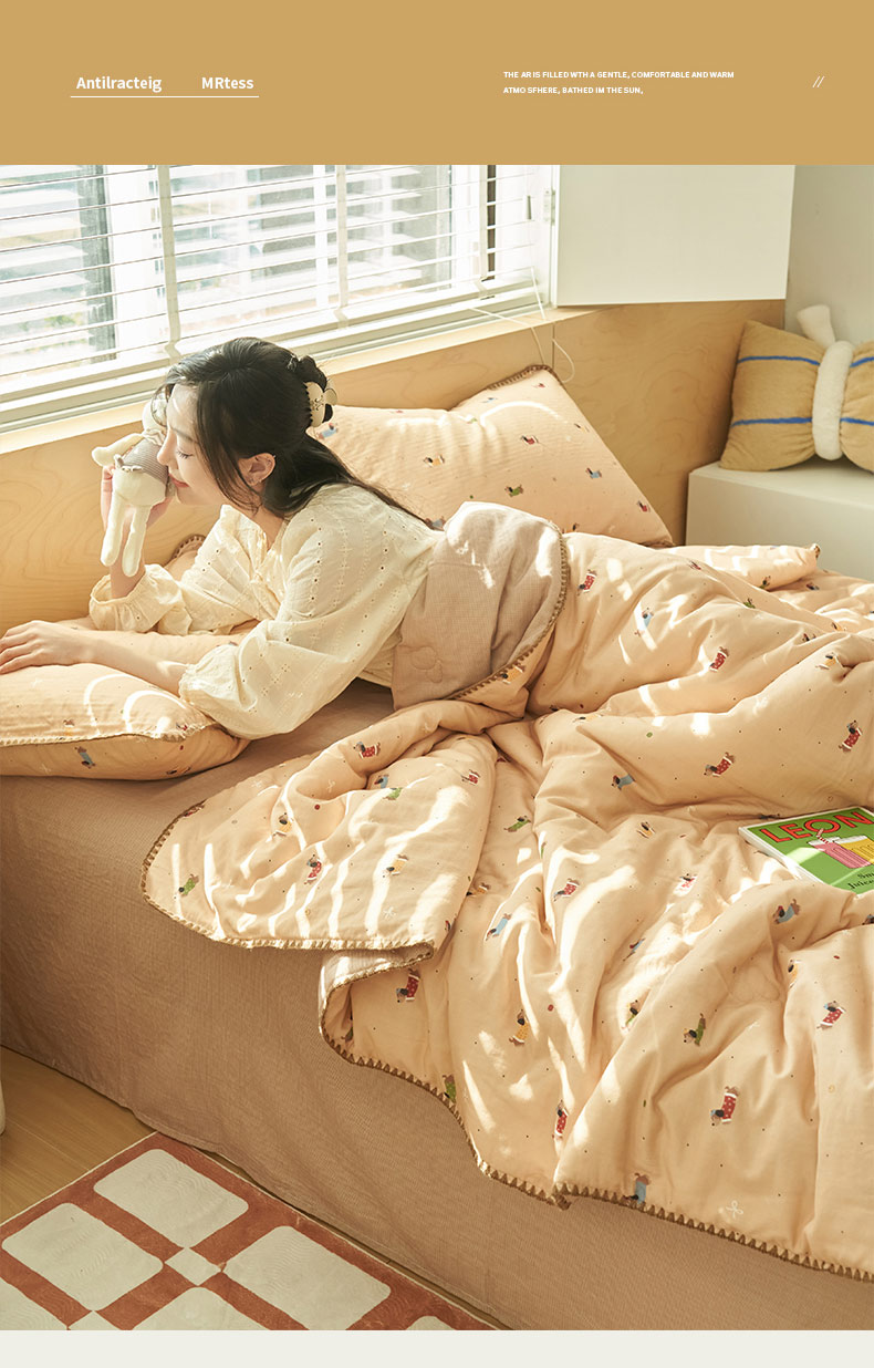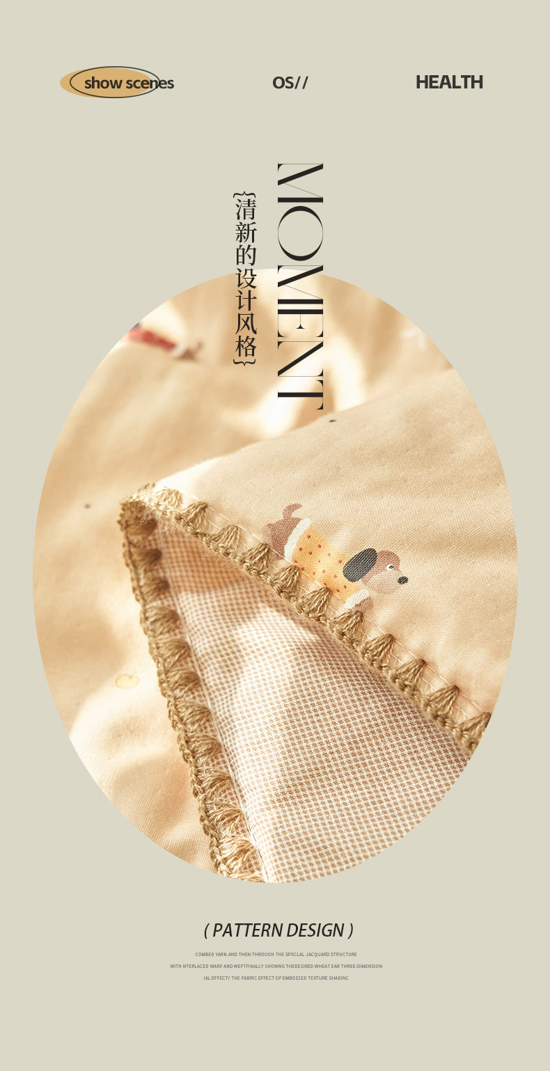• 91家纺网 家纺一手货源 找家纺 寐绸家纺 2025新款纯棉双层纱印花大豆纤维夏被四件套 双层纱-腊肠狗