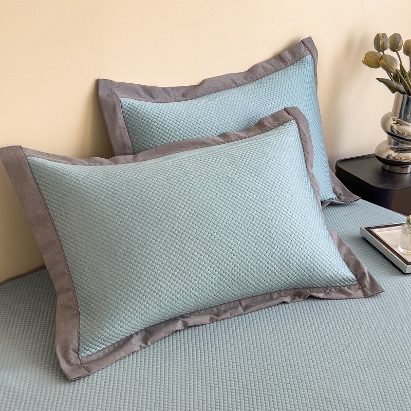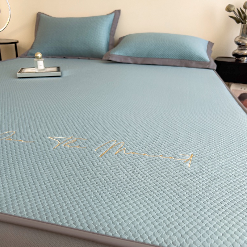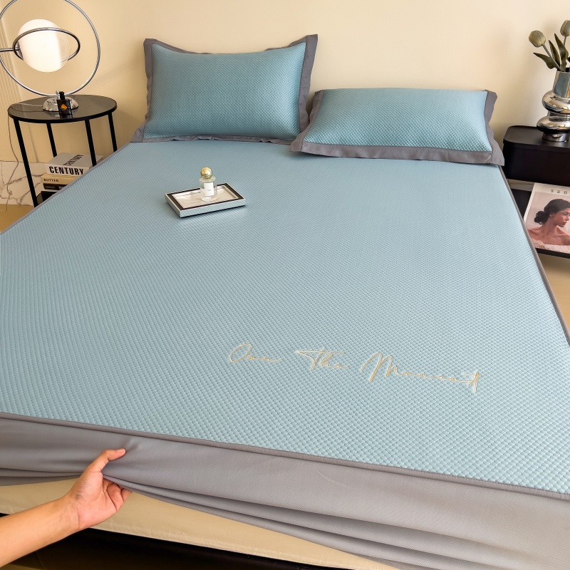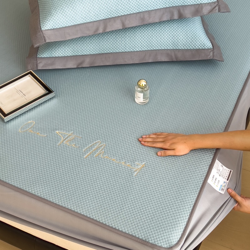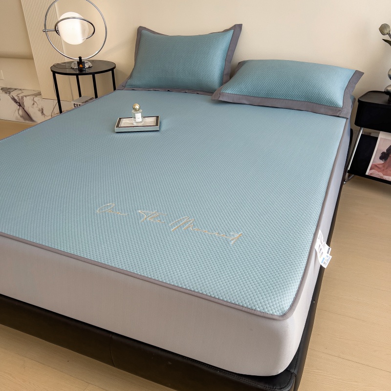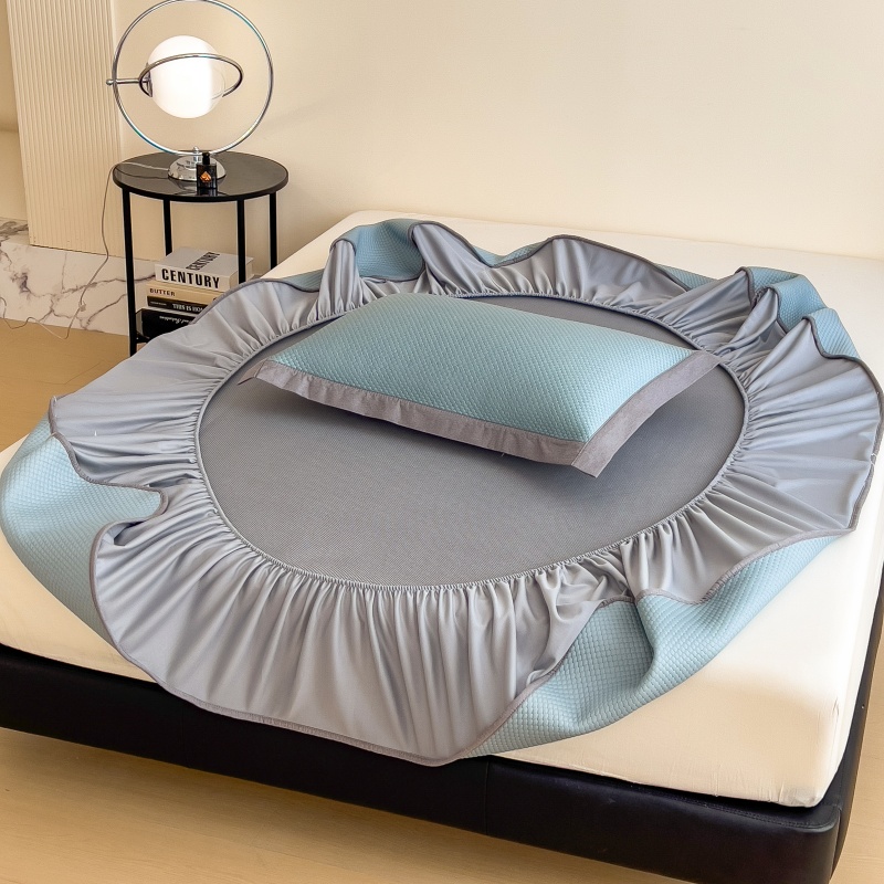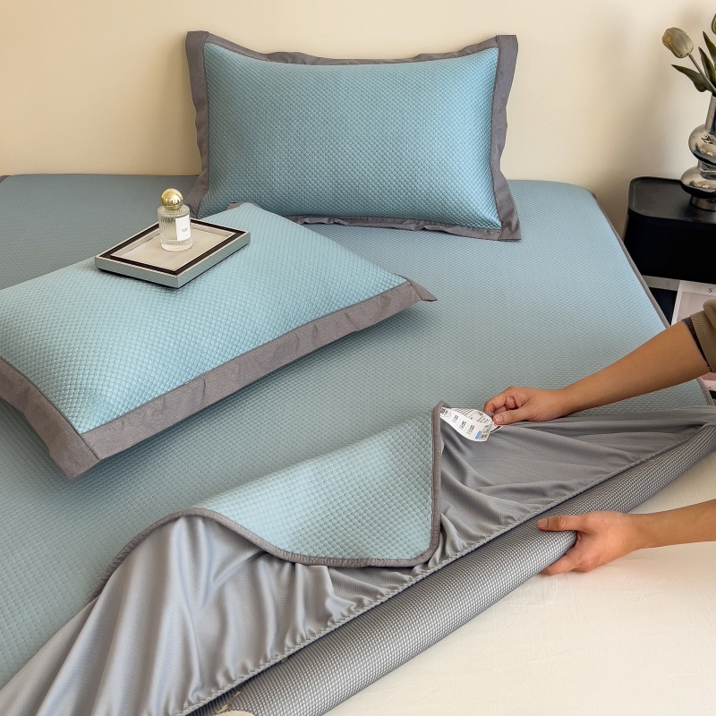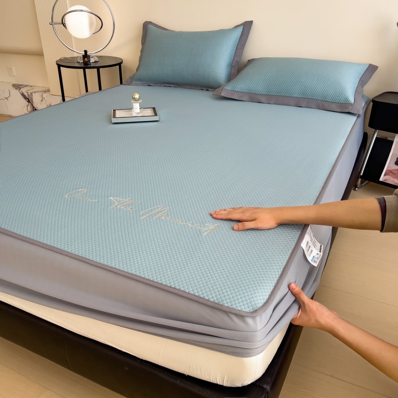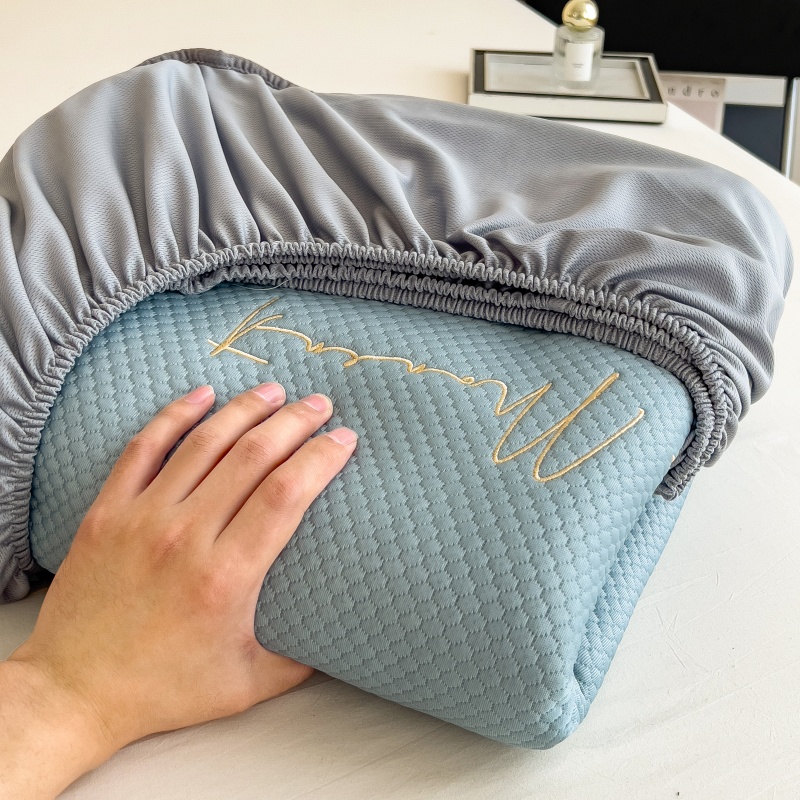 • 91家纺网 家纺一手货源 找家纺 孩子王家纺 2025新款冰豆豆华夫格绣花床单床笠-万丽和系列 万丽和-天空蓝床笠
