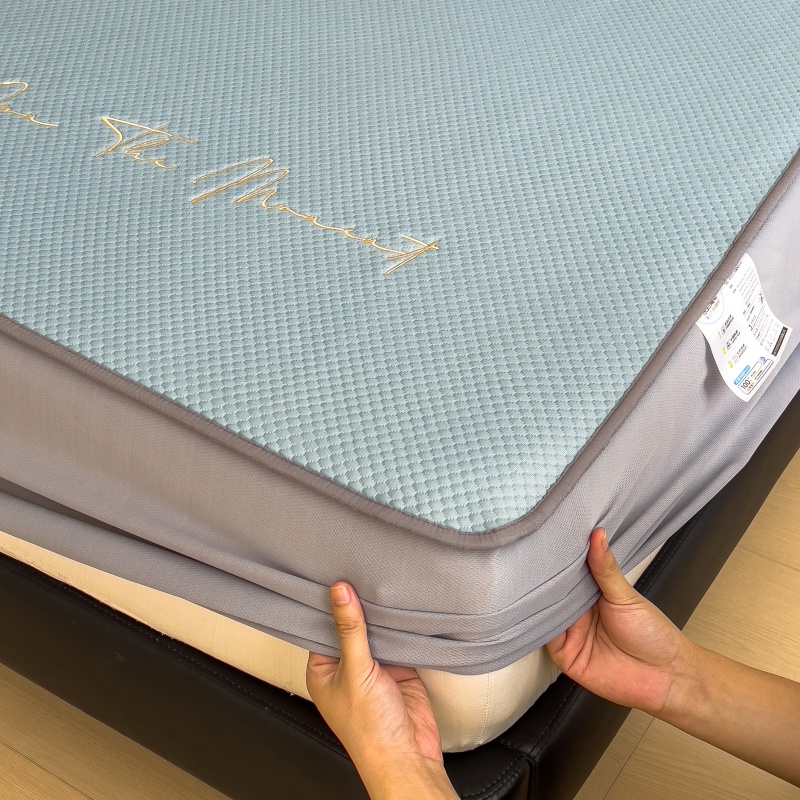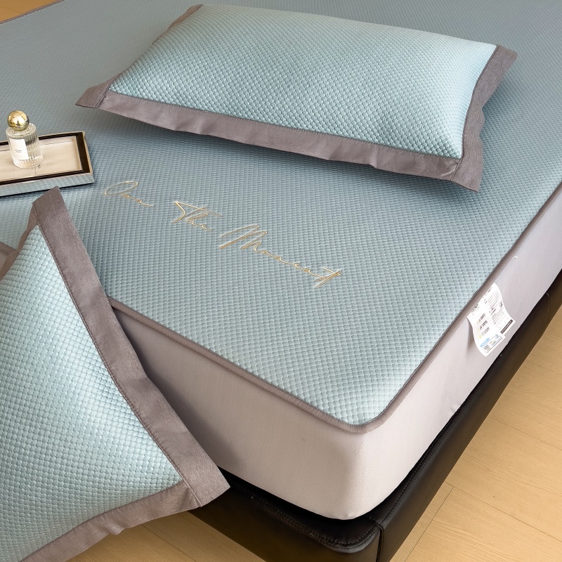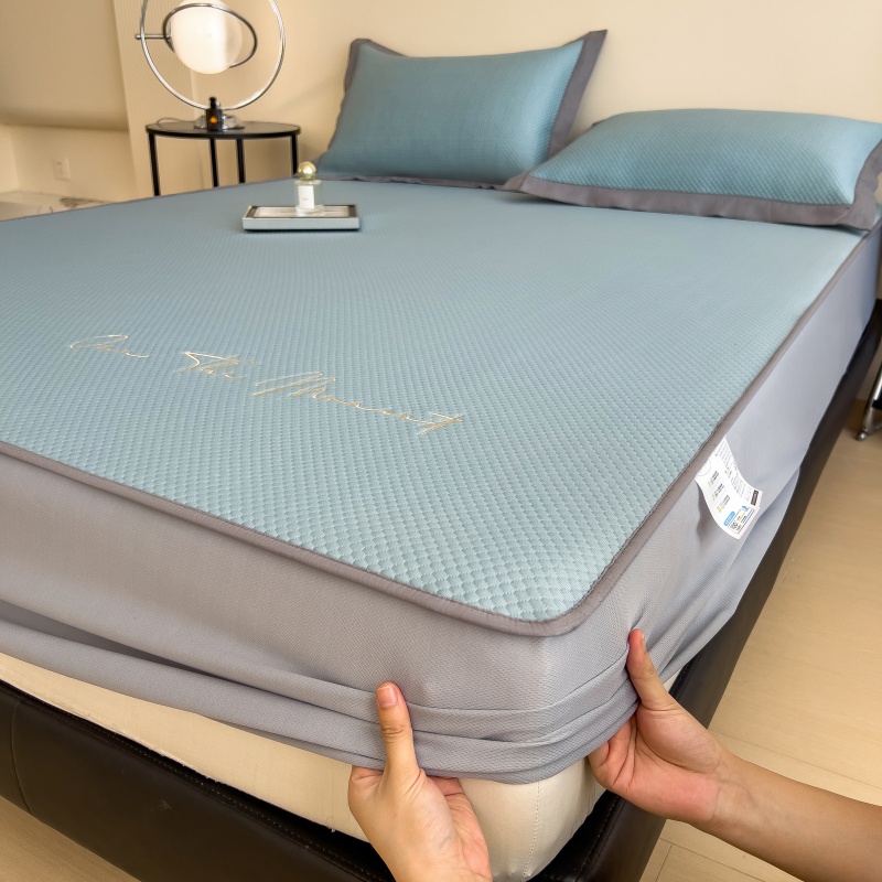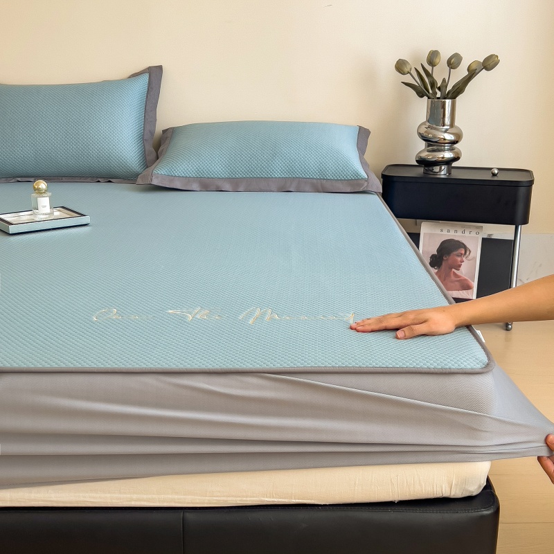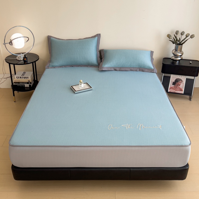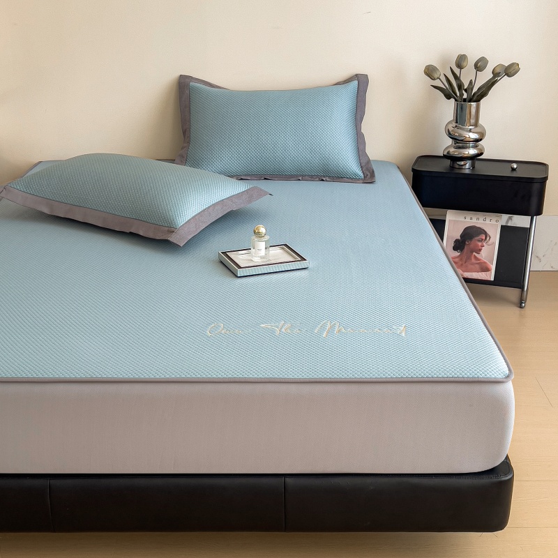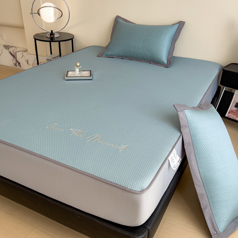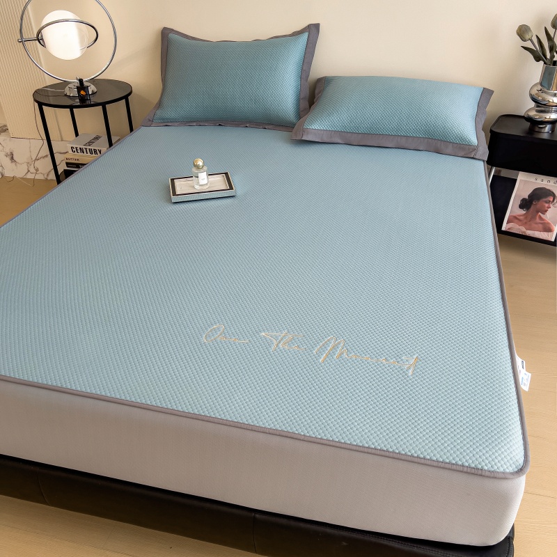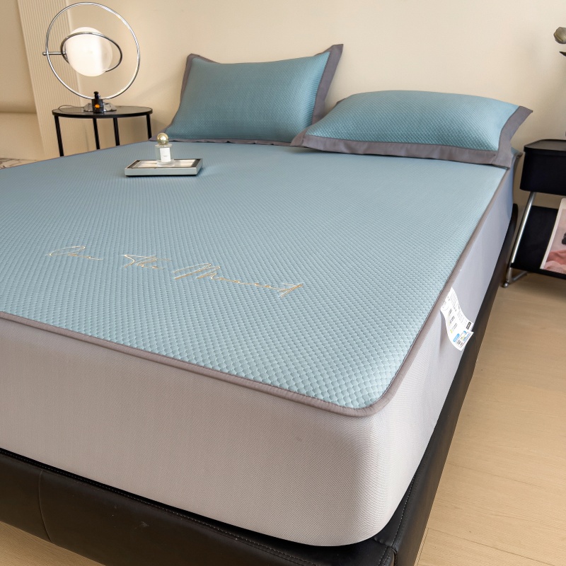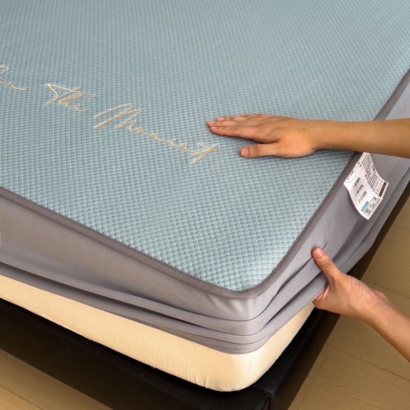 • 91家纺网 家纺一手货源 找家纺 孩子王家纺 2025新款冰豆豆华夫格绣花床单床笠-万丽和系列 万丽和-天空蓝床笠