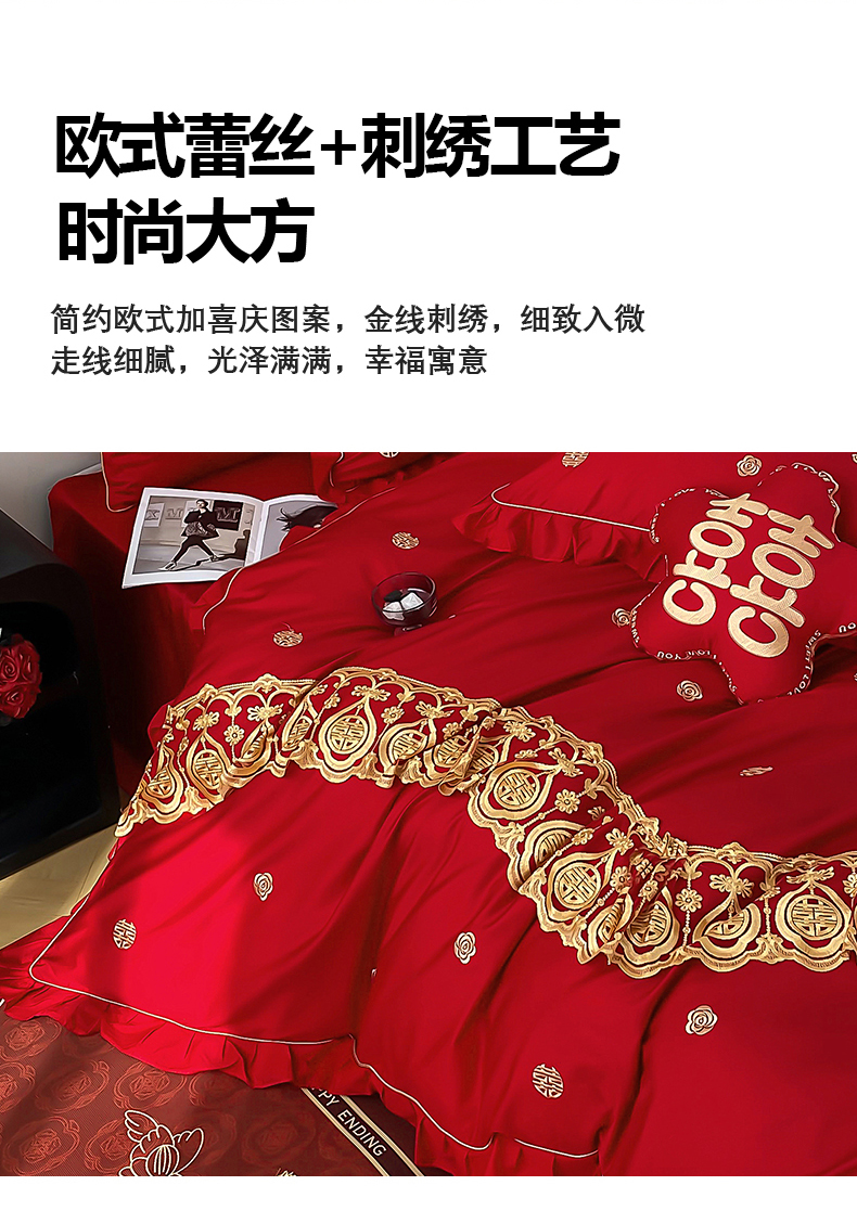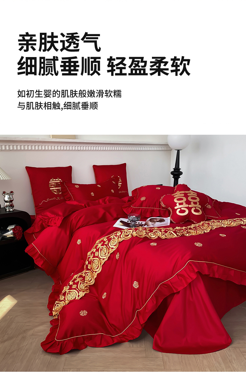 (总)甜咪咪婚庆 2025新款50支长绒棉全棉婚庆床单床盖四件套多件套刺绣工艺,洛可可,爱恋小熊,爱意久久,多子多福,花田喜事,节节高升,克拉恋人,浪漫情怀,怦然心动红,怦然心动玉,甜心玫瑰,温莎公主,伊甸园,醉红妆