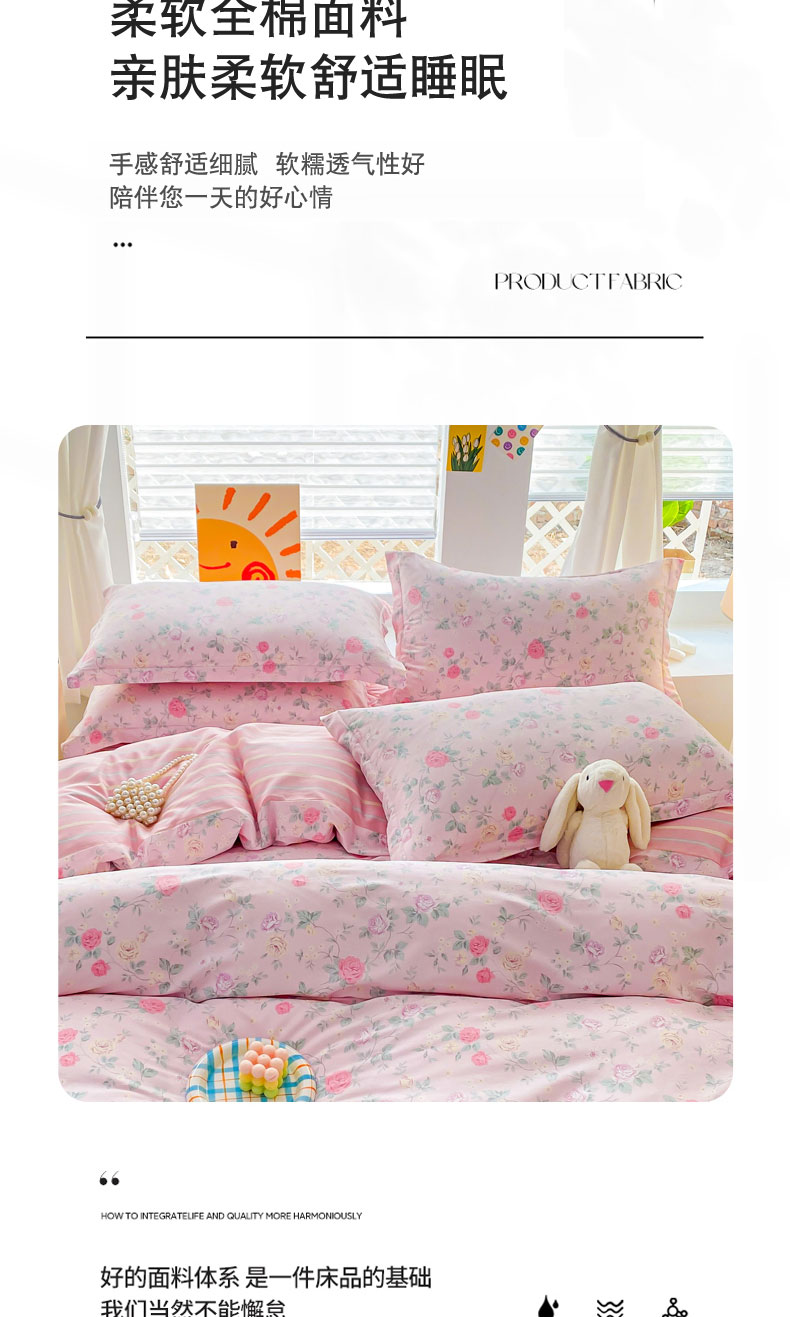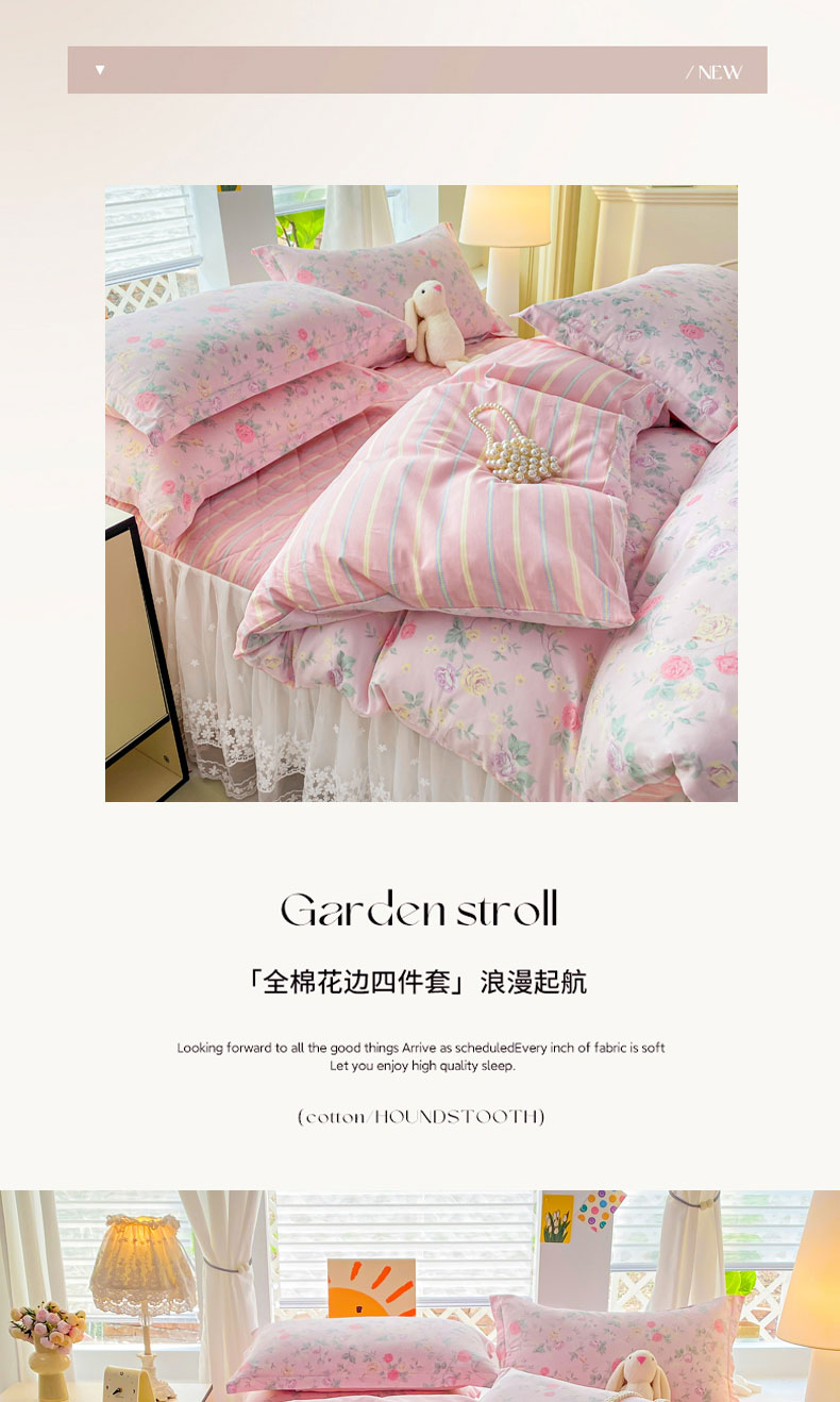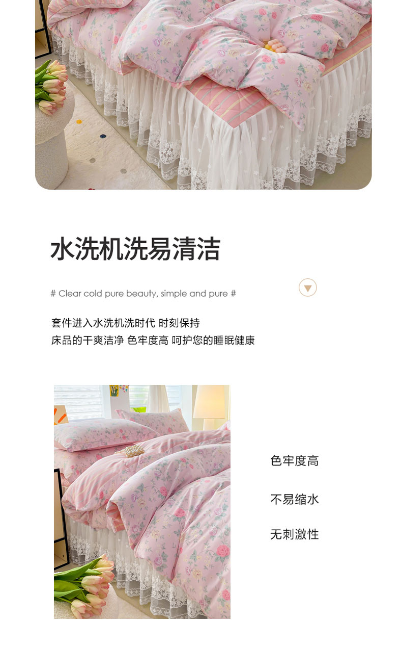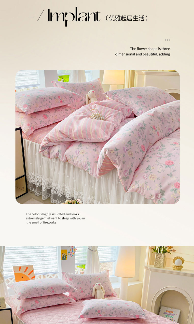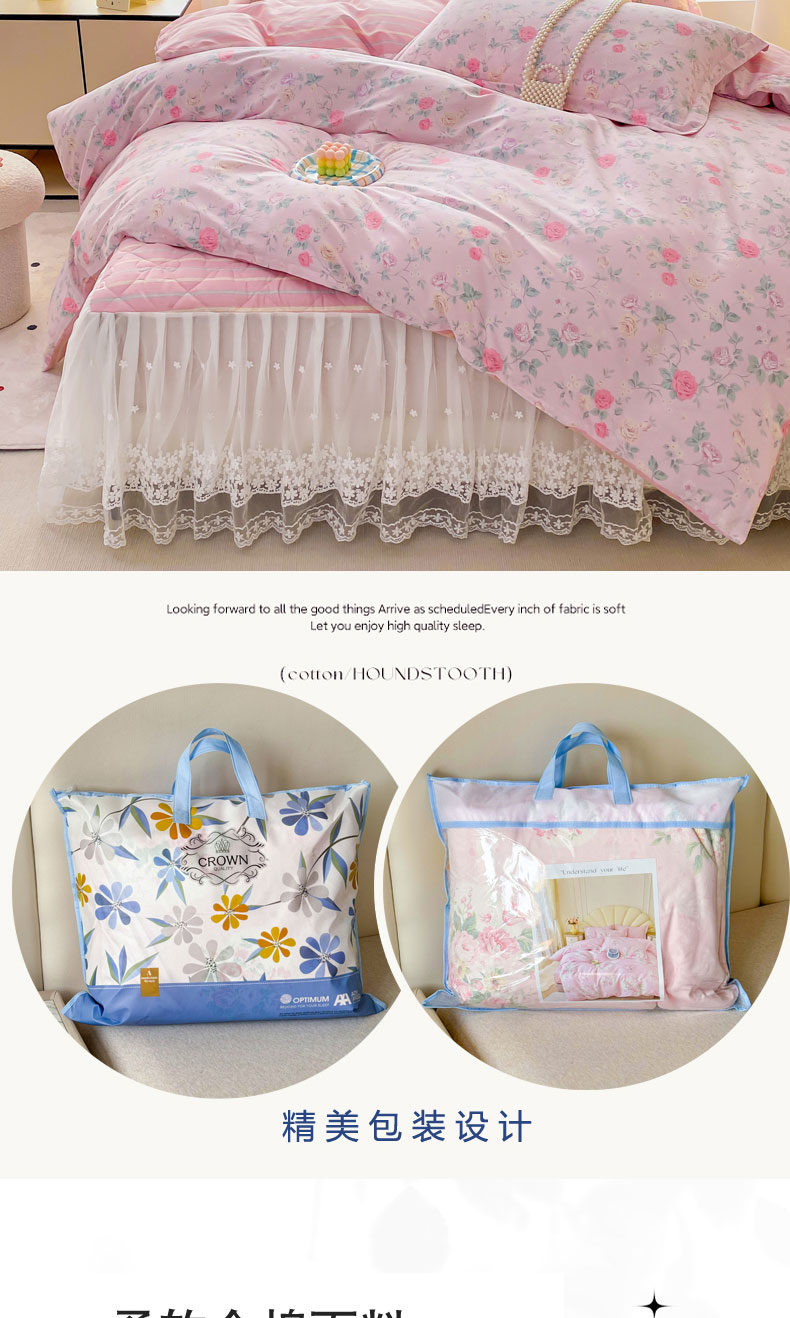 商品名称:提花大世界 2025直播爆款全棉活性印花夹棉床盖床裙花边四件套 美琳庄园-粉