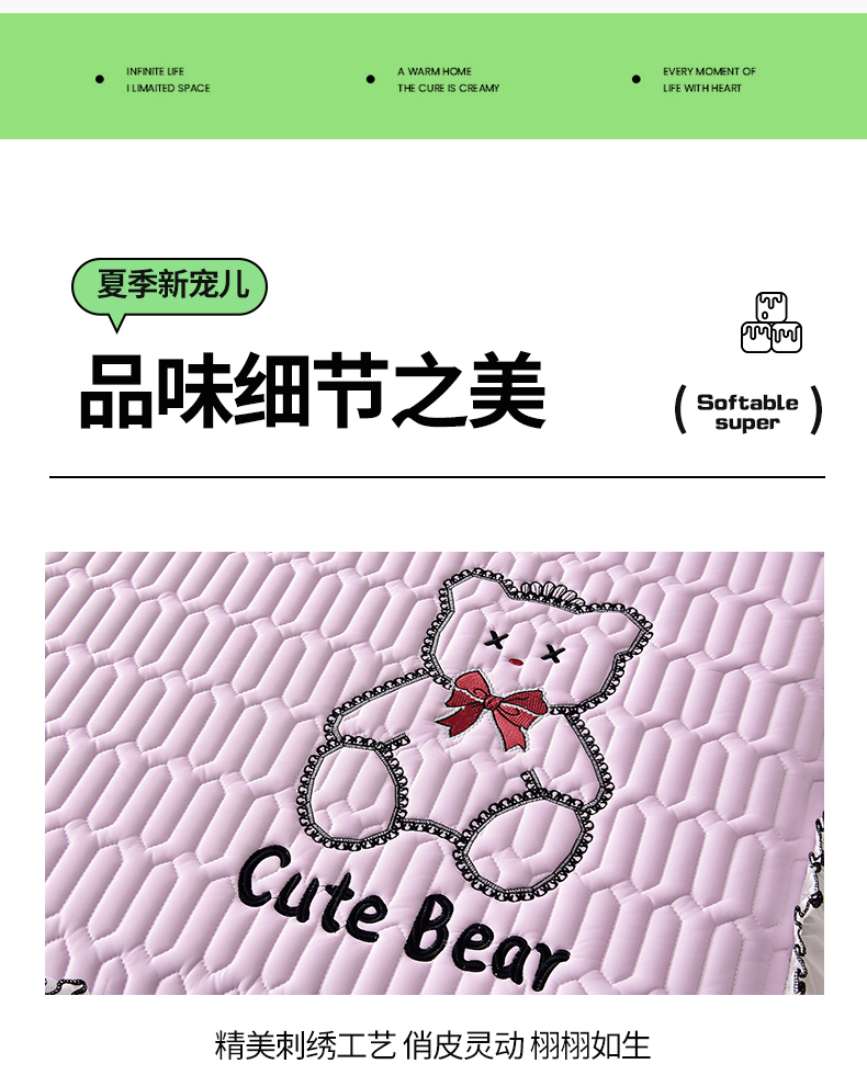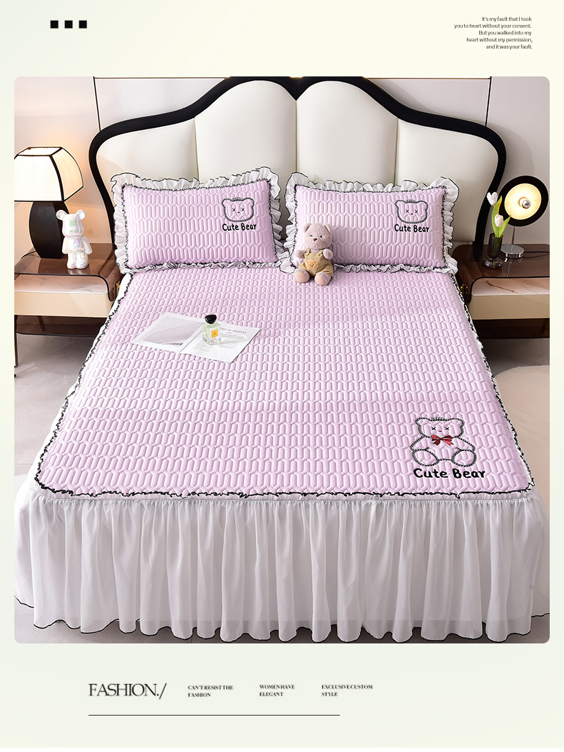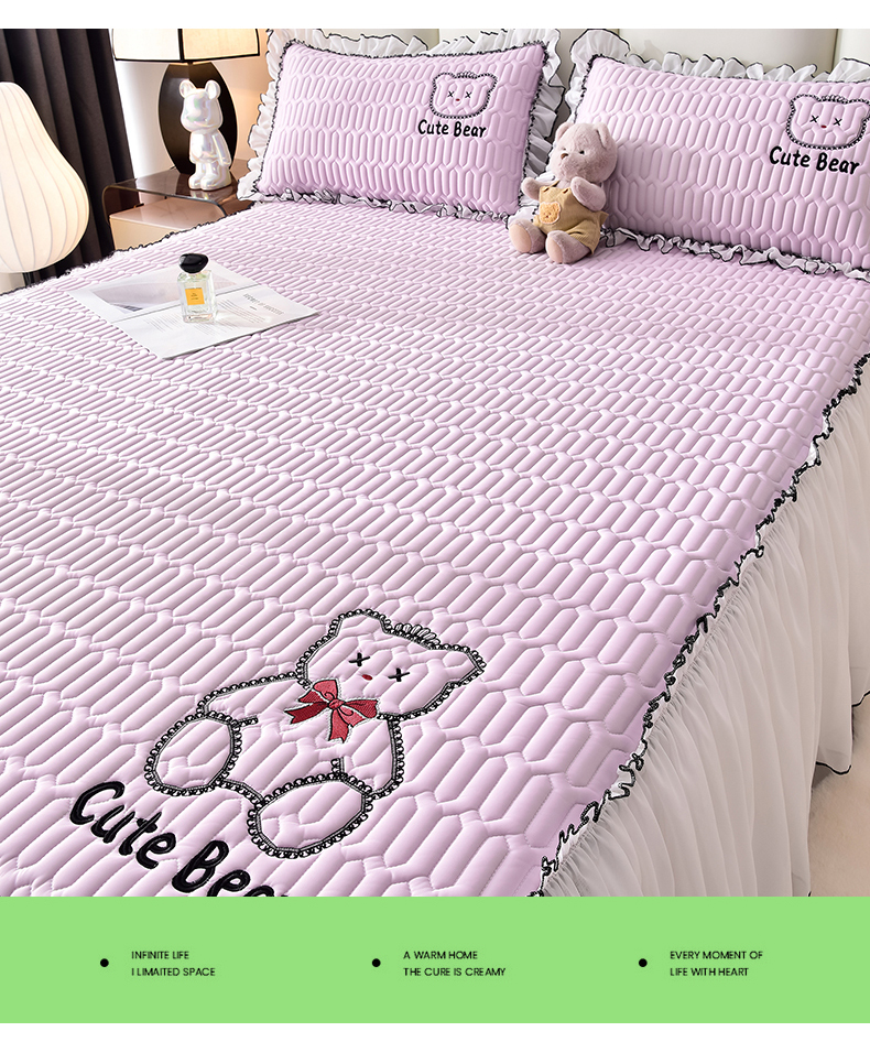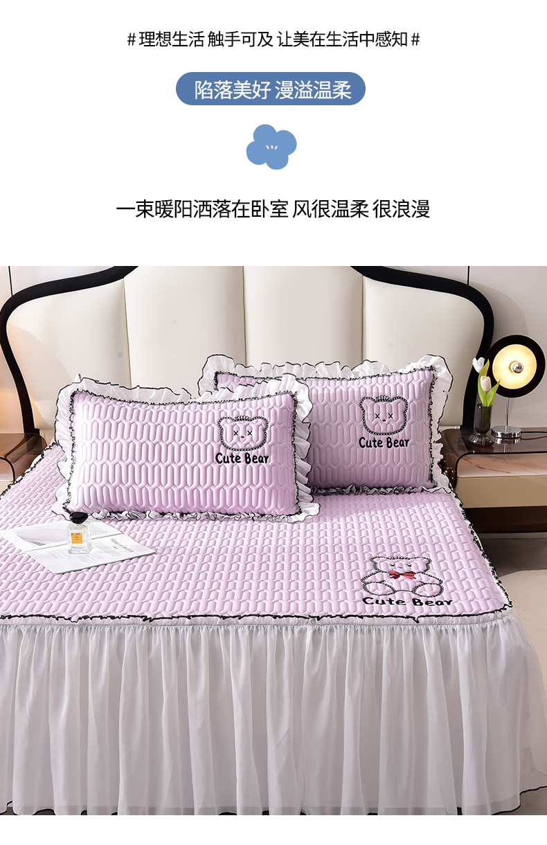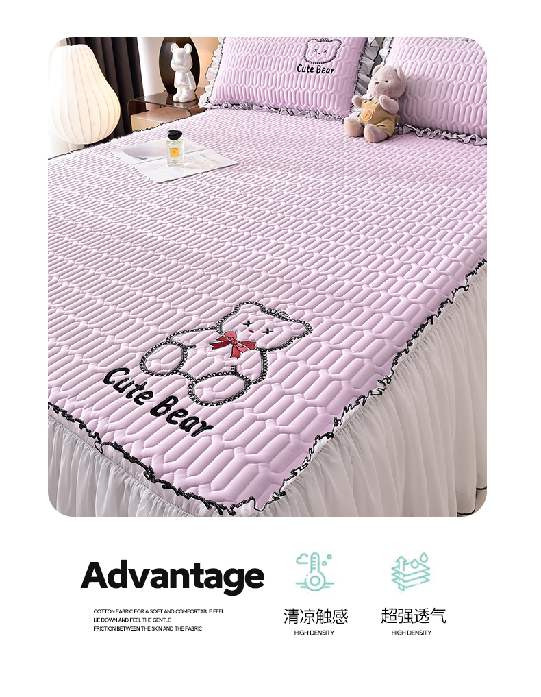 商品名称:炫拼家纺 2025新款coco熊床裙款乳胶凉席 coco熊-熏衣紫