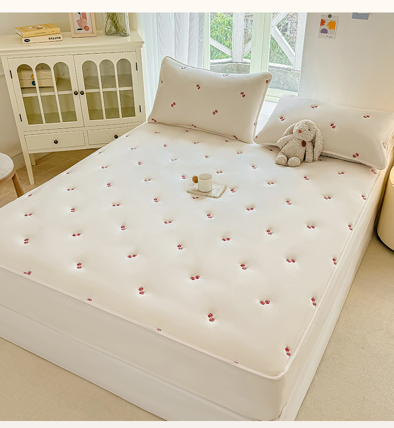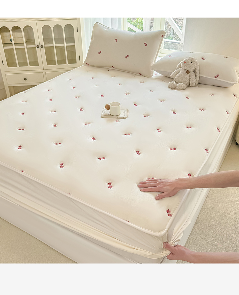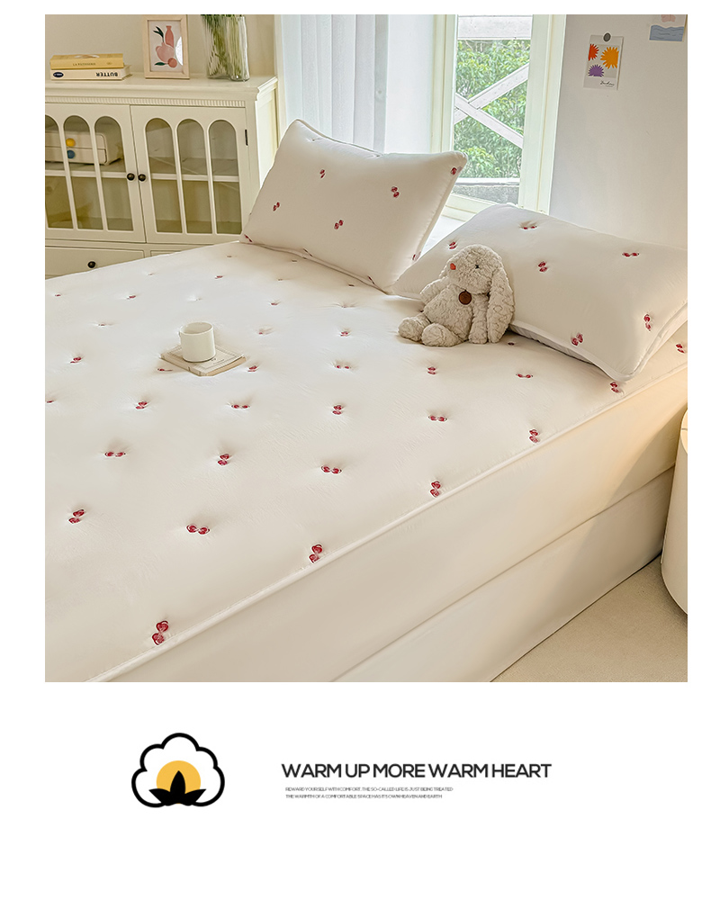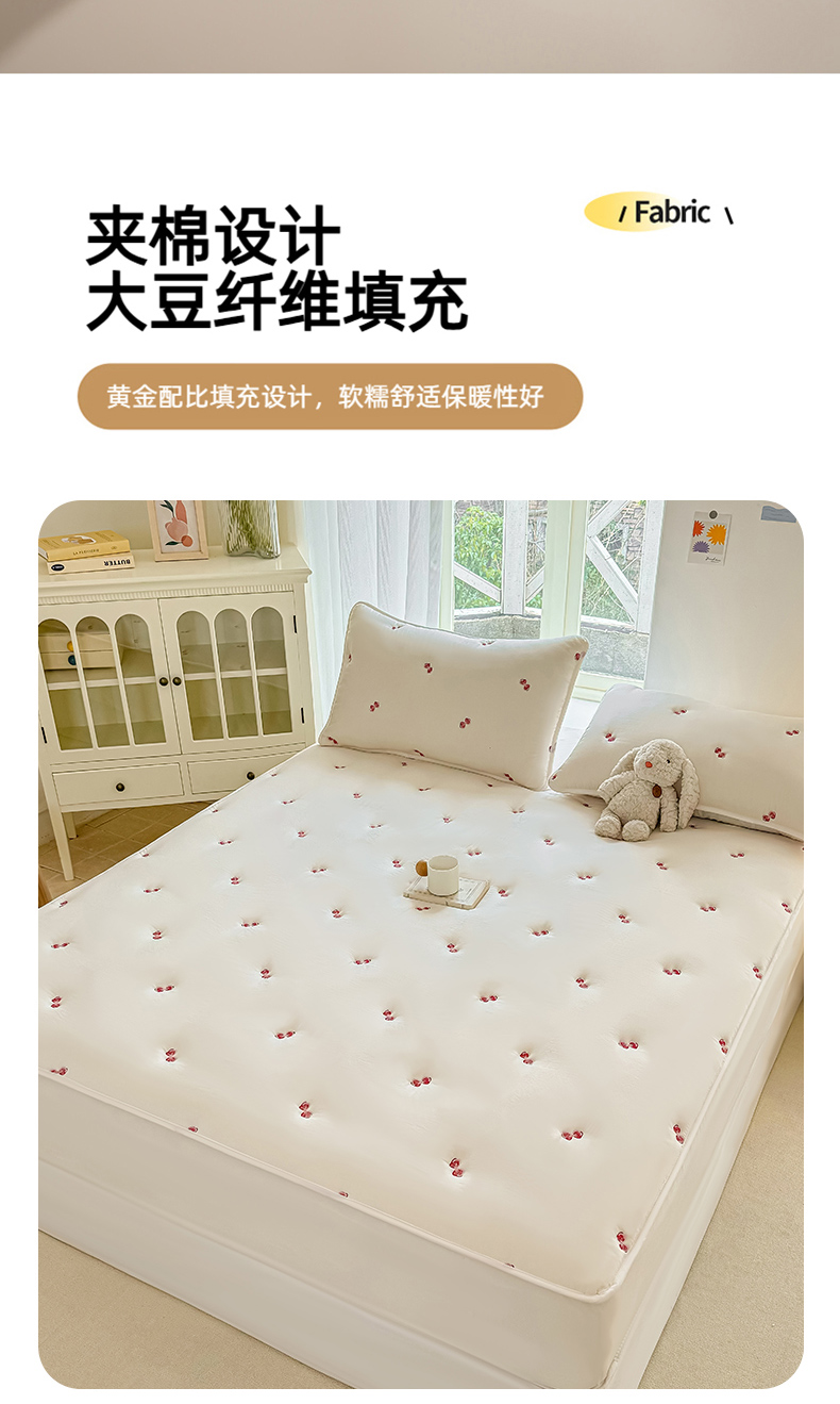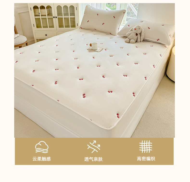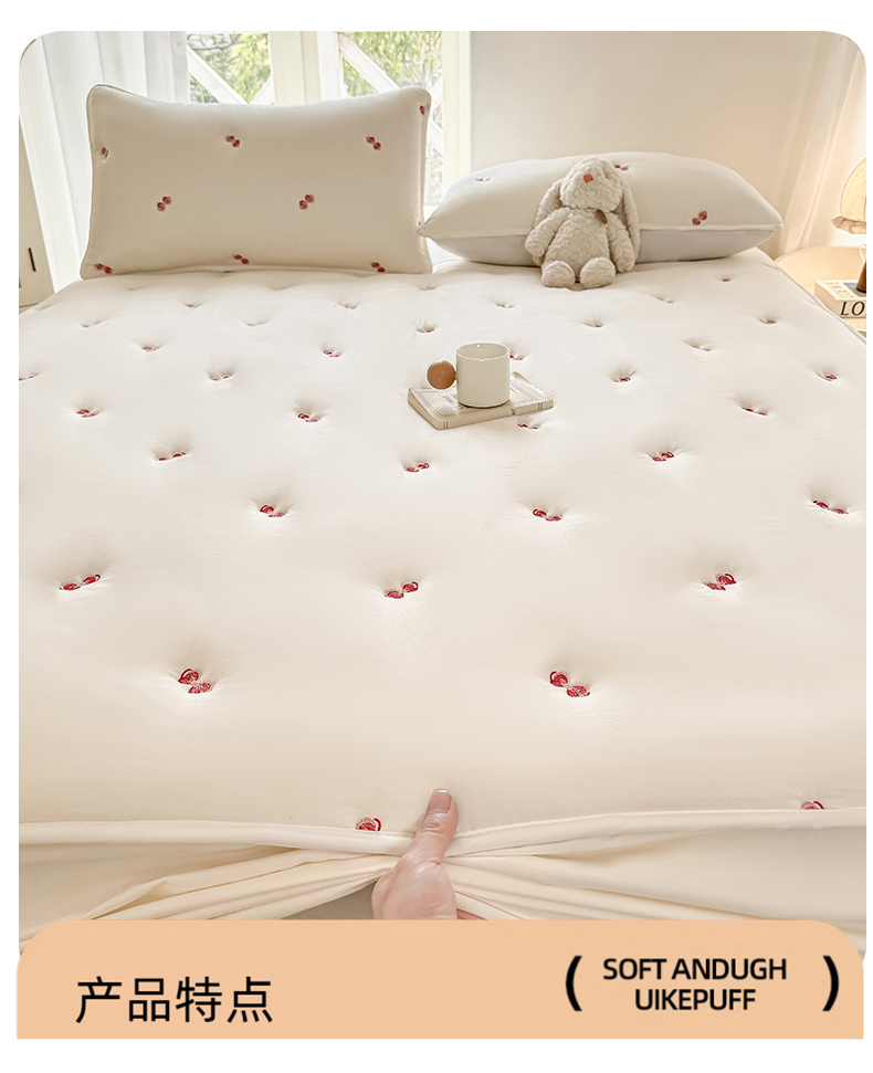 萌飞 2025新款A类亲肤大豆棉刺绣夹棉床笠床褥学生床垫 蝴蝶结白