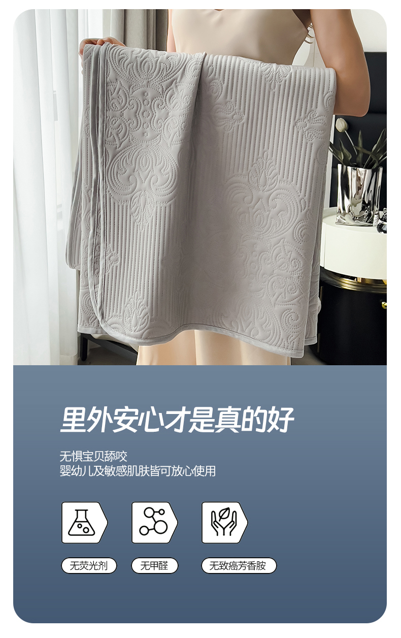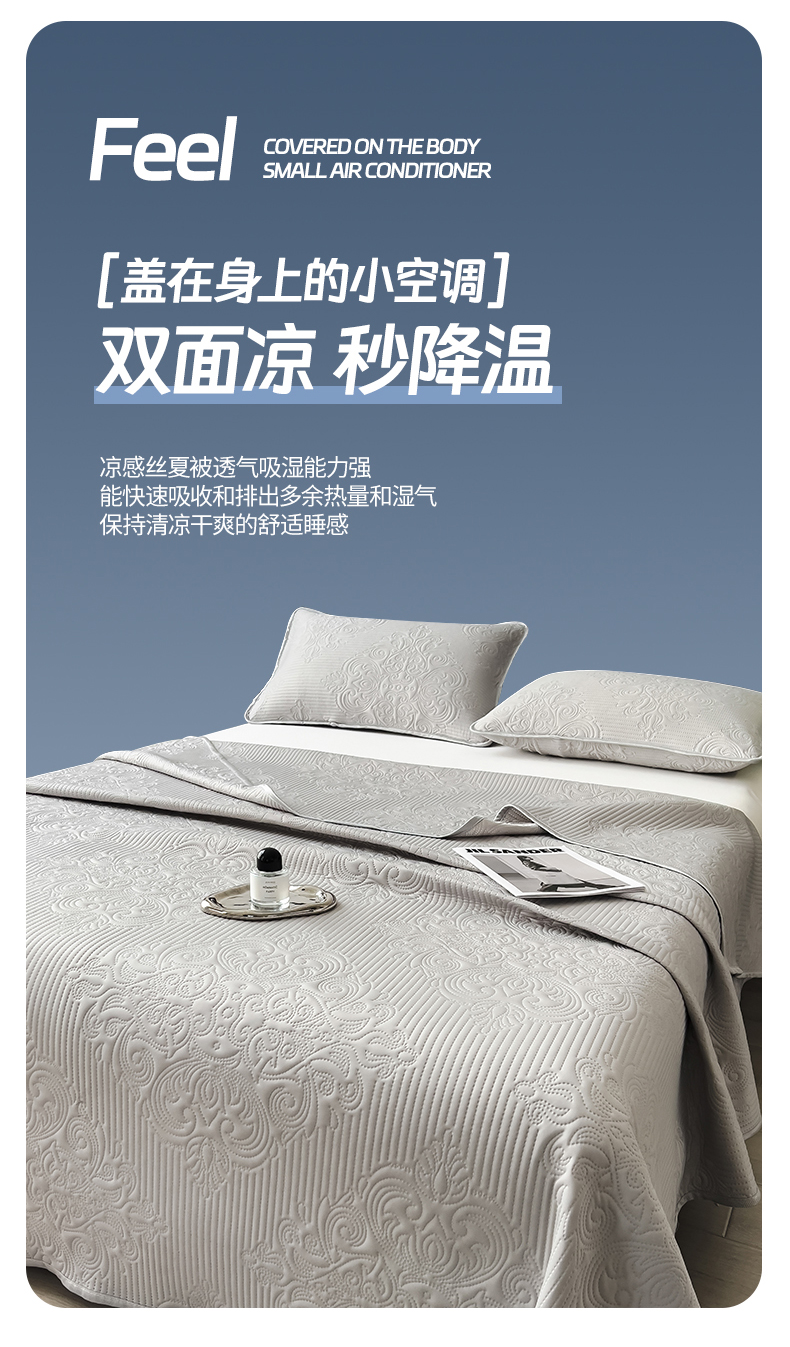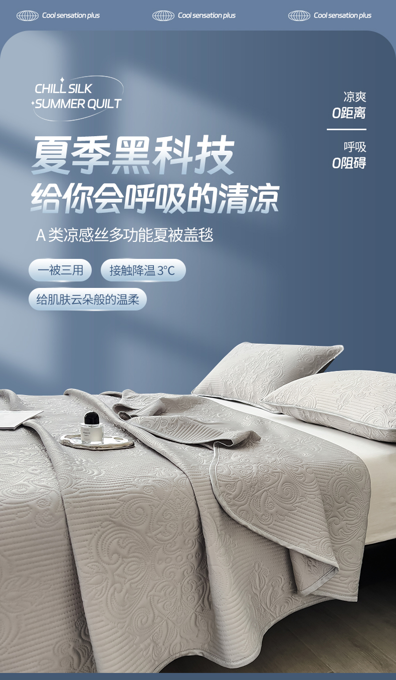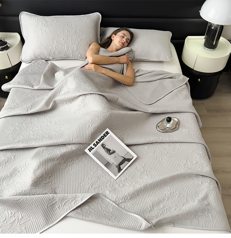 商品名称:世纪绒品 2025新款A类凉感科技欧式多功能夏被床单盖毯 欧式-银霜浅灰