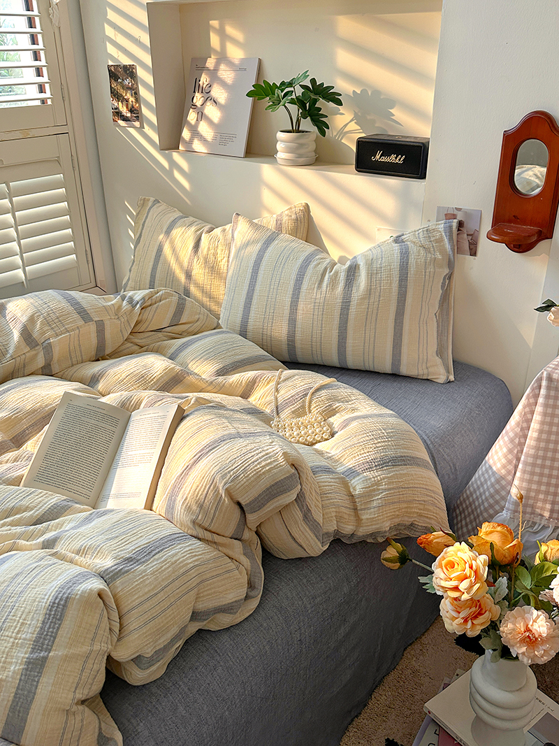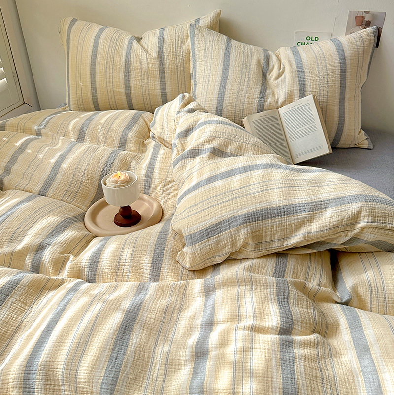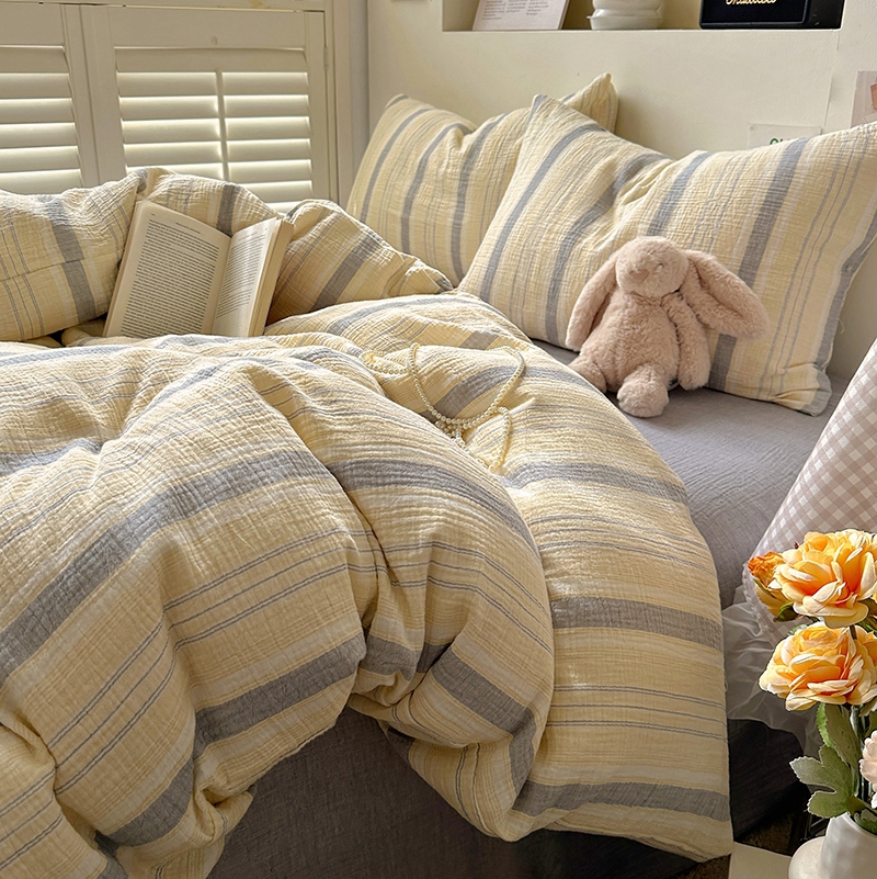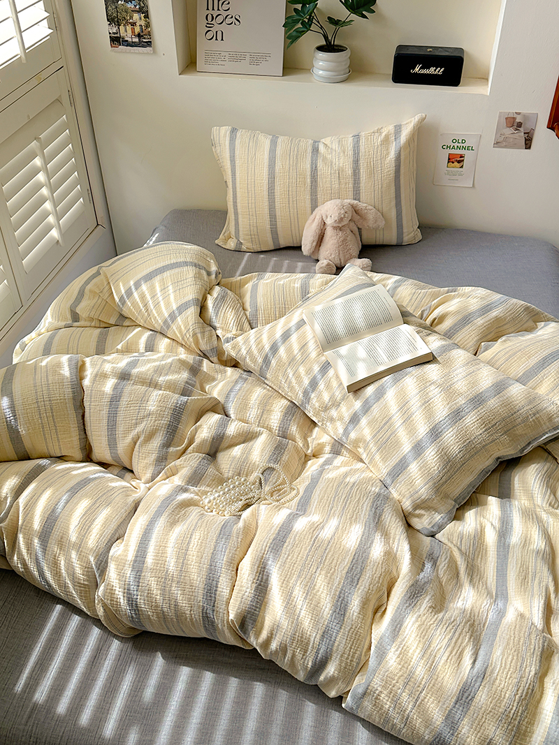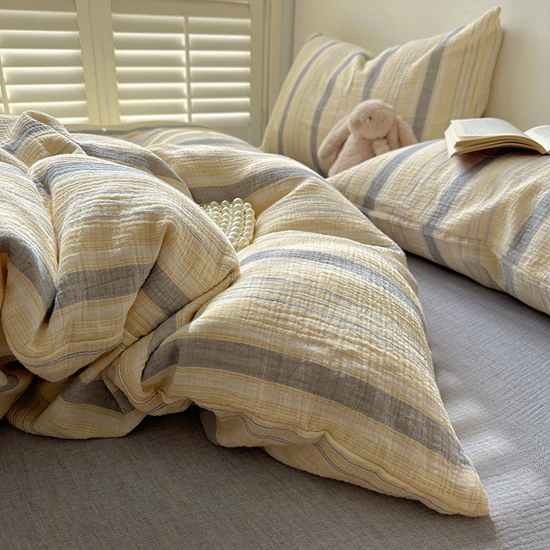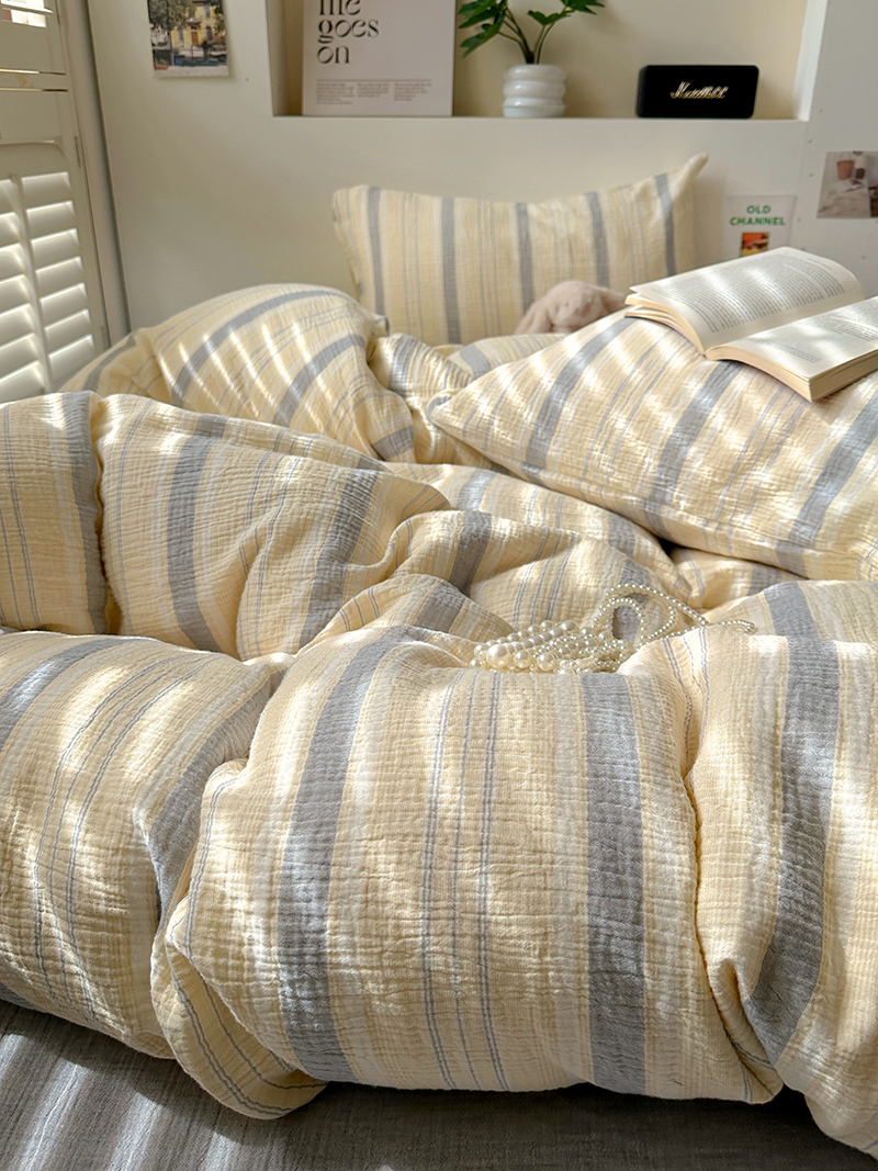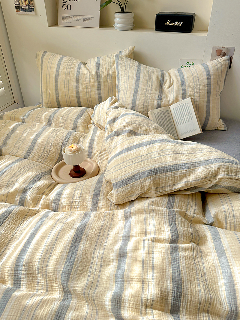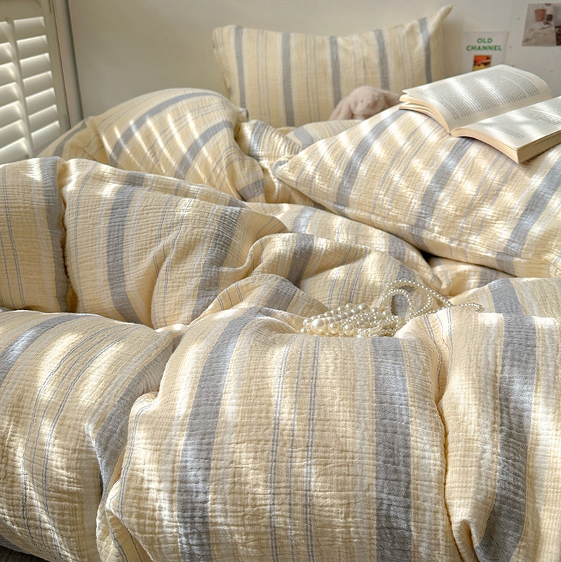 田野2025新款全棉皱皱纱四件套 时予-黄灰