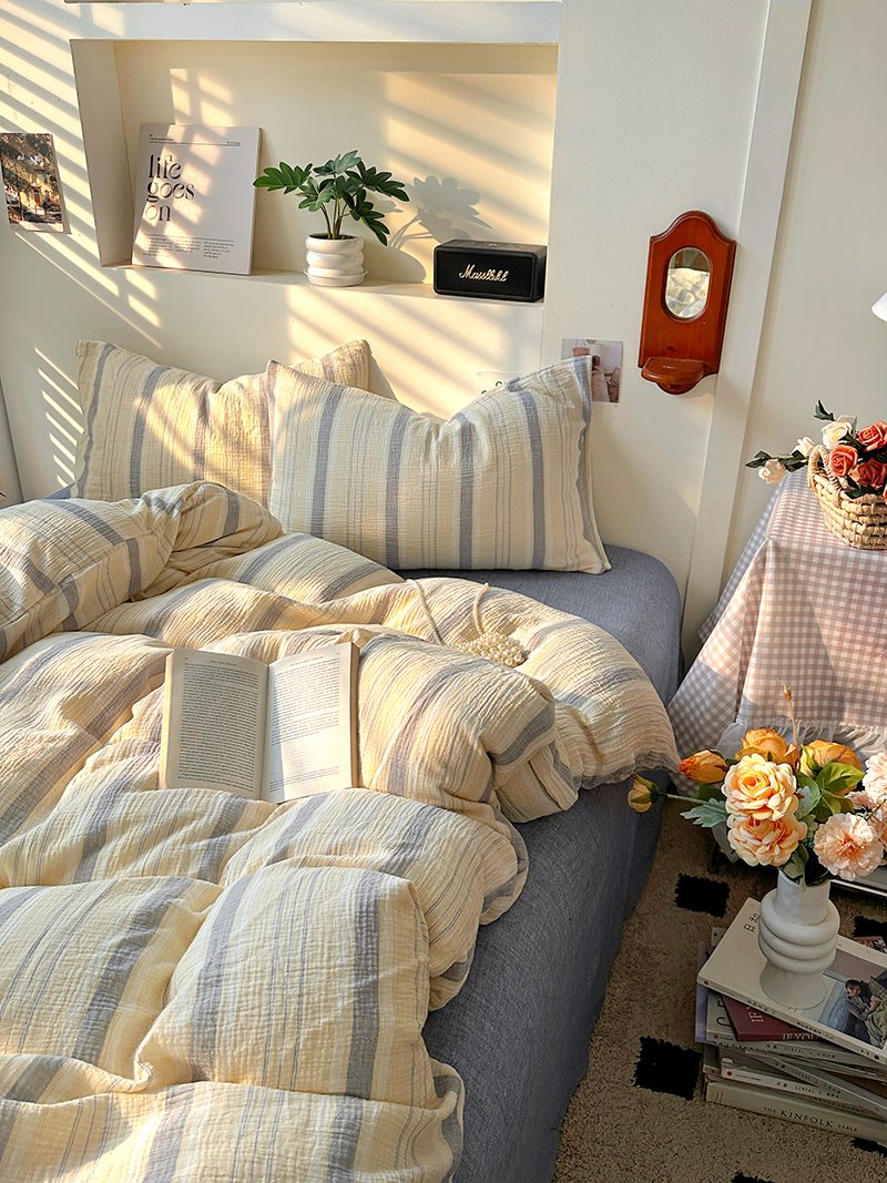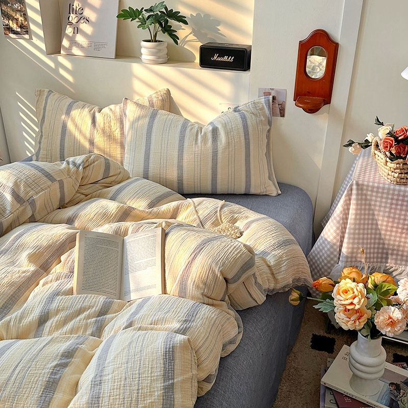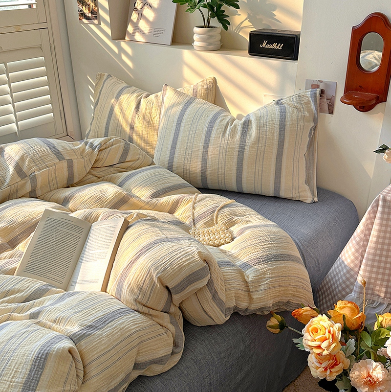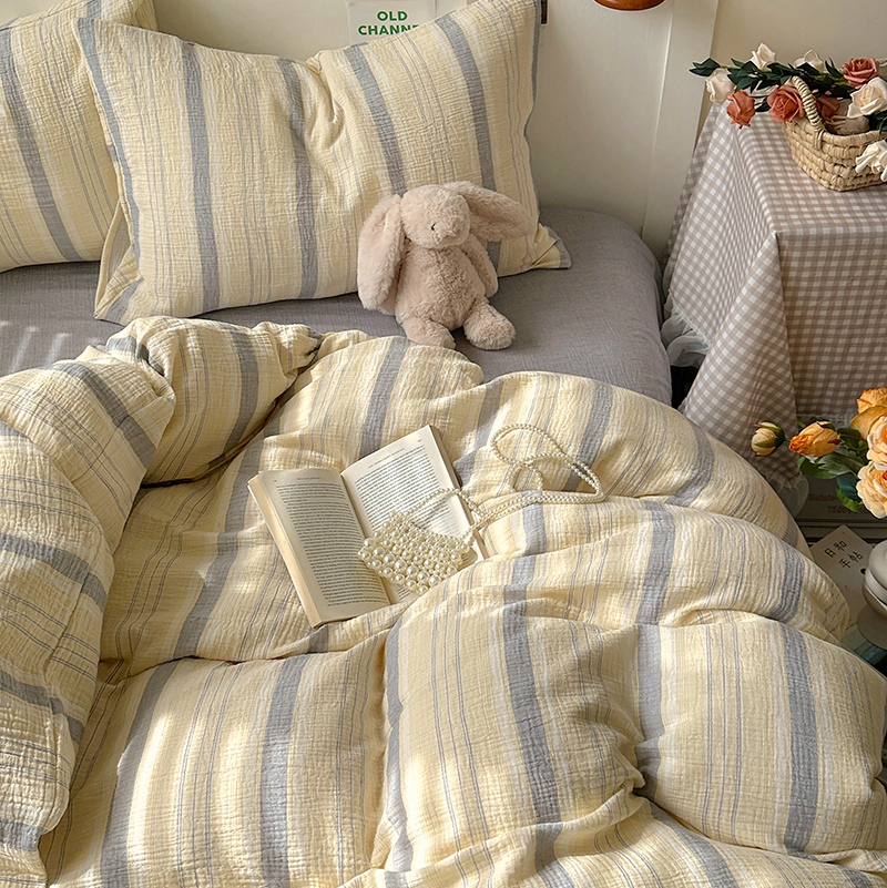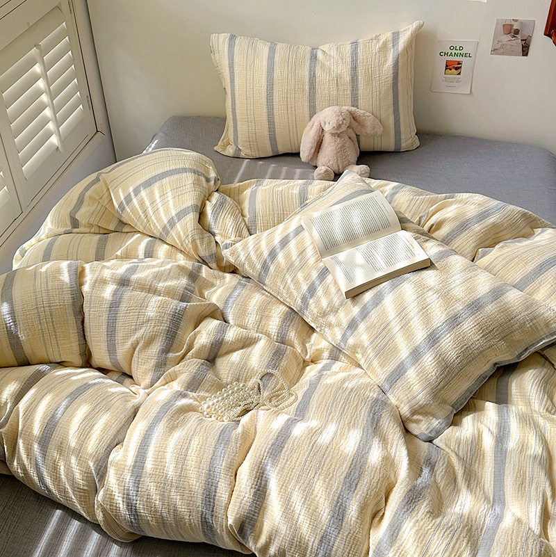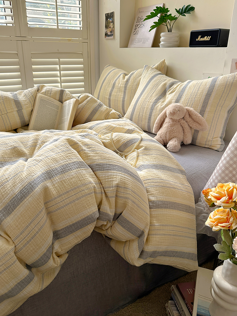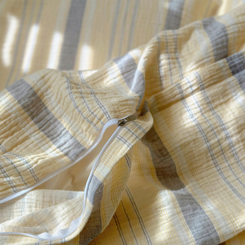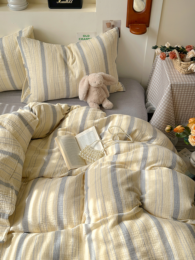 田野2025新款全棉皱皱纱四件套 时予-黄灰