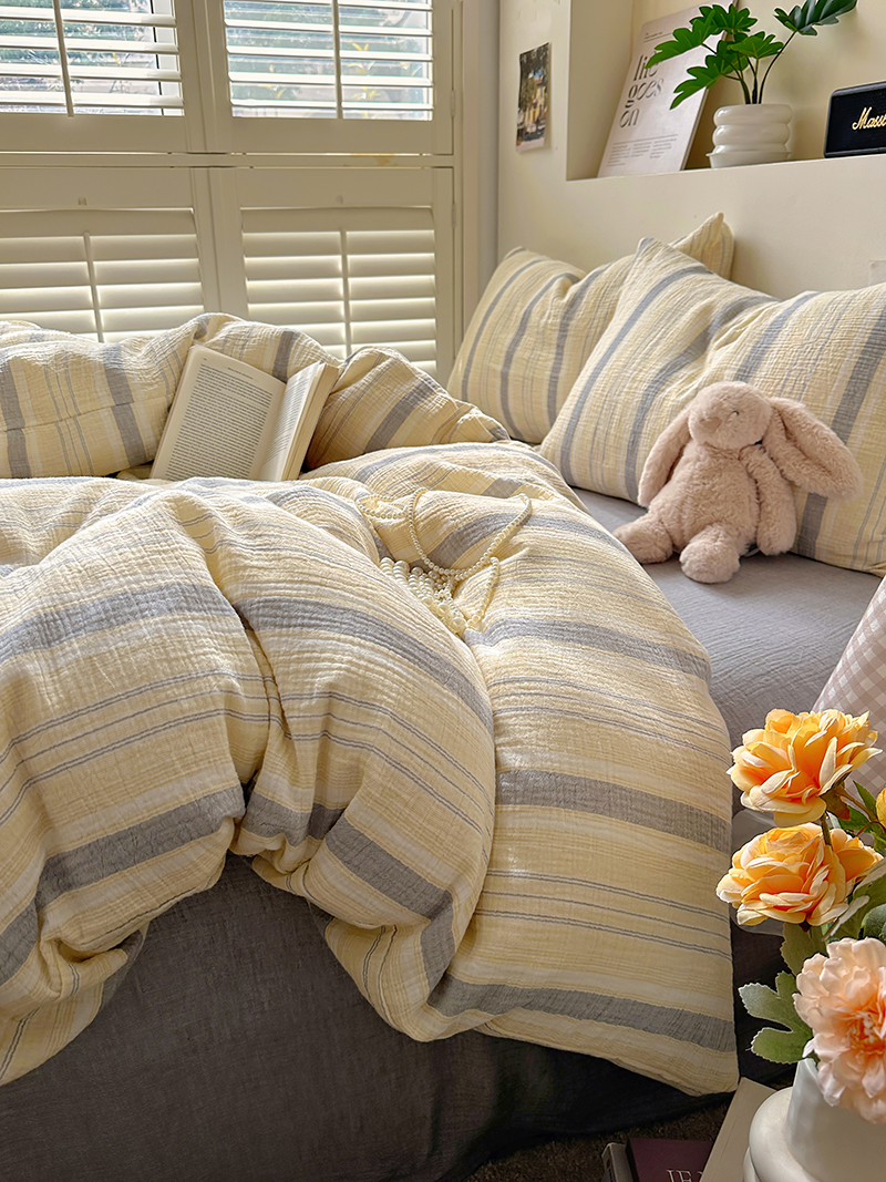 商品名称:田野2025新款全棉皱皱纱四件套 时予-黄灰