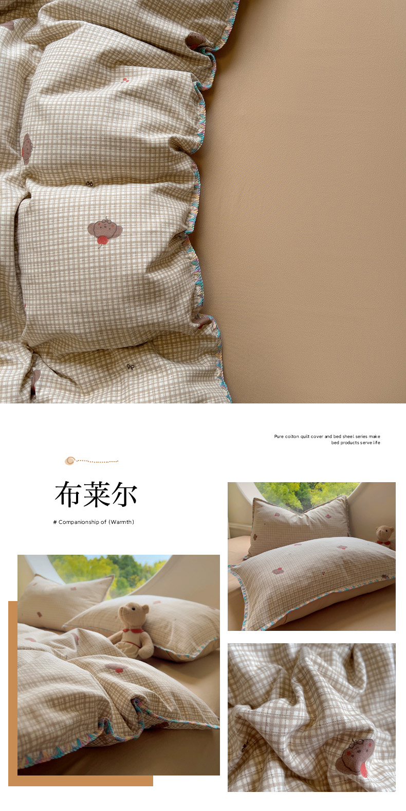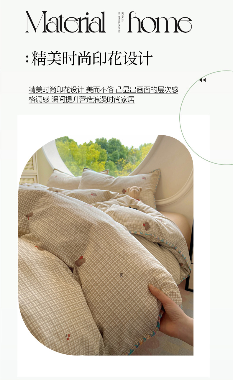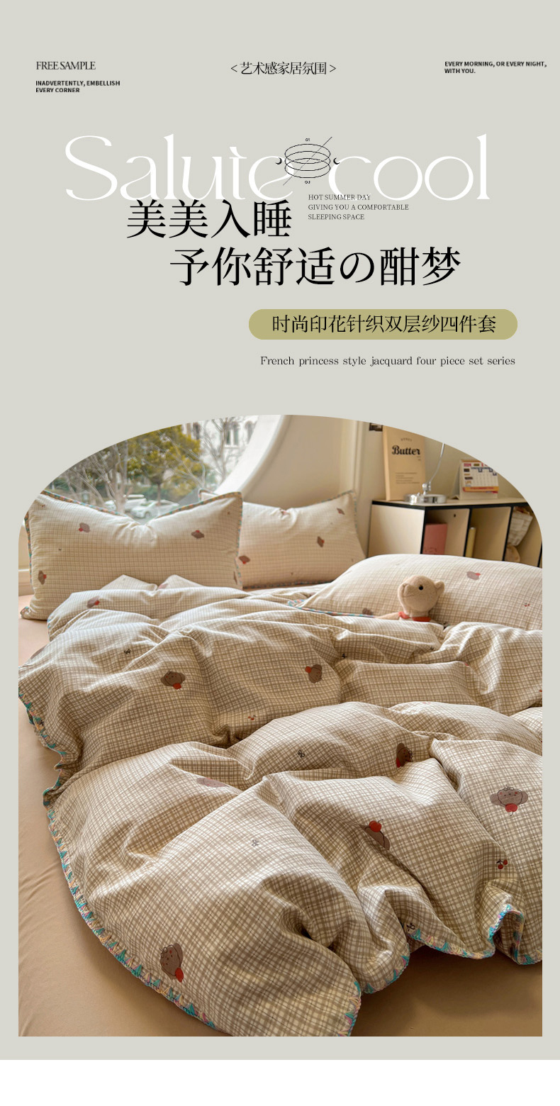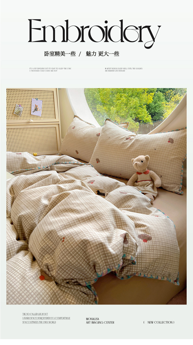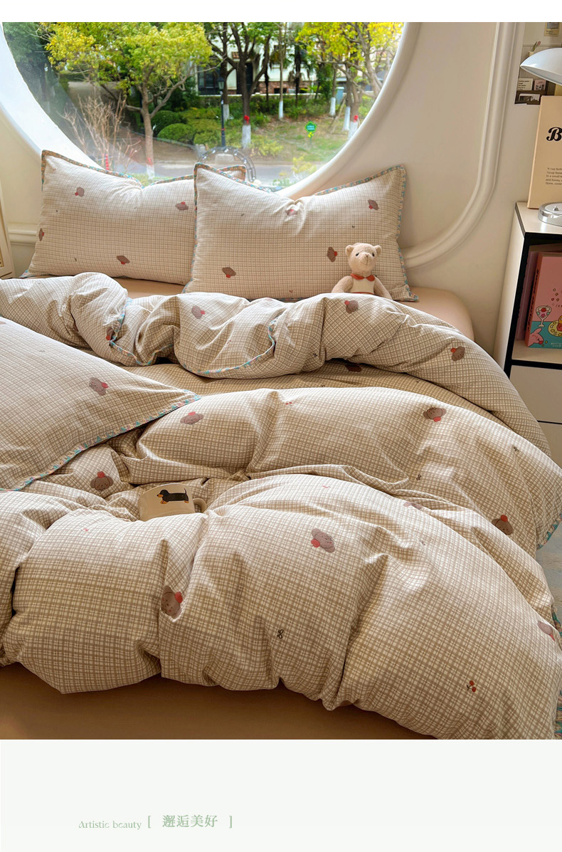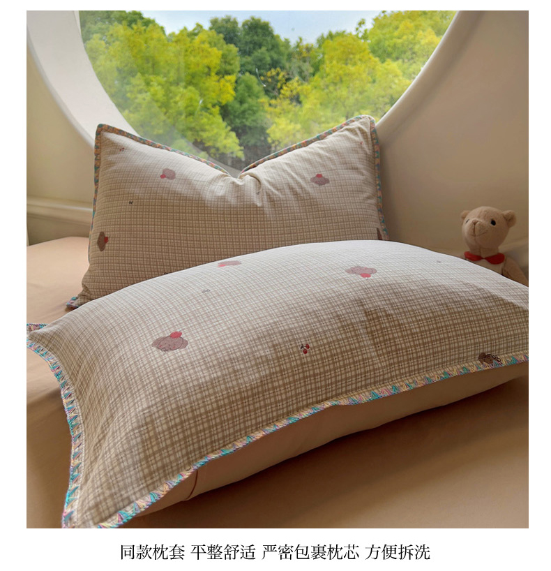 (总)2025新款专版高克重超萌卡通格子双拼毛巾绣软糯糯水洗棉四件套(场景二),狮子饼干,冰淇淋kt,蝴蝶结羊驼,腊肠狗狗,森林派对,糖果卡皮巴拉,星星兔