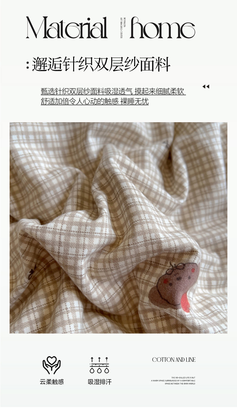 (总)葡萄家 2024新款双层纱云柔水洗棉萌趣卡通系列四件套(提供买家秀联系客服),草莓小熊,红小猫,欢乐皮皮,可爱熊猫,库洛小米,狂欢,蓝小猫,你好小狗,小羊咩咩,樱桃小猫