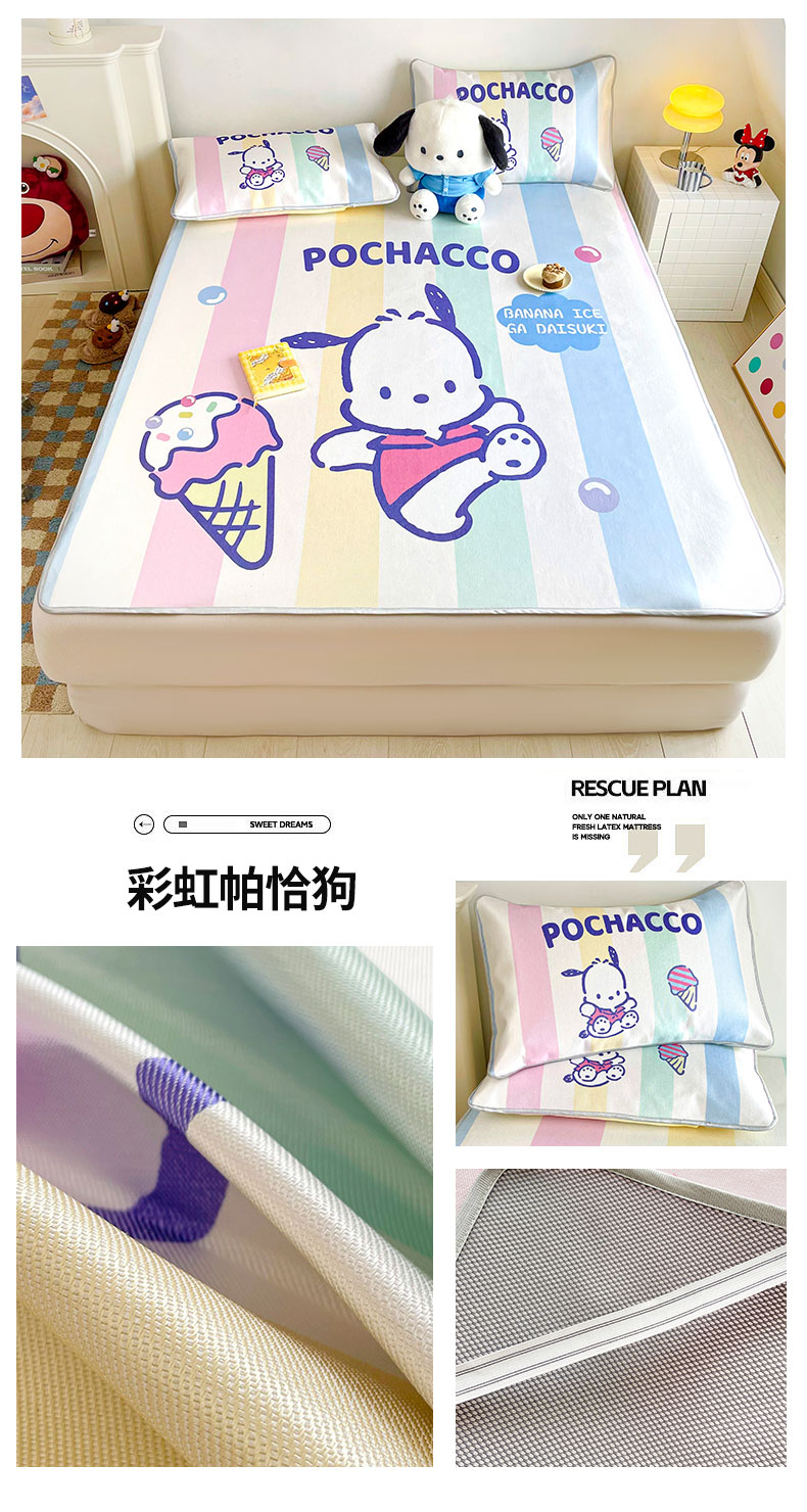 商品名称:米帛家纺 2025新款 A类大版三丽鸥冰藤席-床席款 彩虹帕恰狗