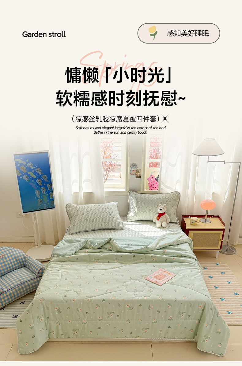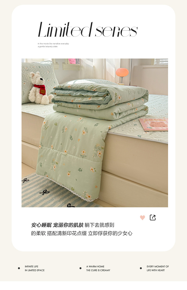 当前位置: 91家纺网 > 商品网购 > 床品套件 > 四件套 > 夏被四件套 > 慕尚家纺 2025春夏新款乳胶凉席水洗棉夏被夏凉被空调被三件套四件套 夏日蝴蝶