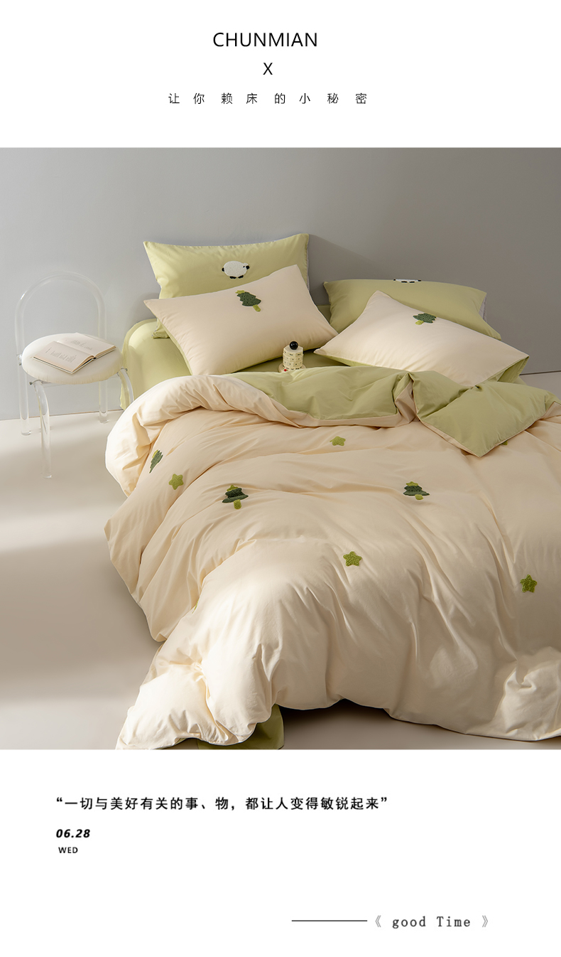 商品名称:Mr.pig猪先生水洗棉 2025新款水洗棉毛巾绣四件套 圣诞树-杏豆青