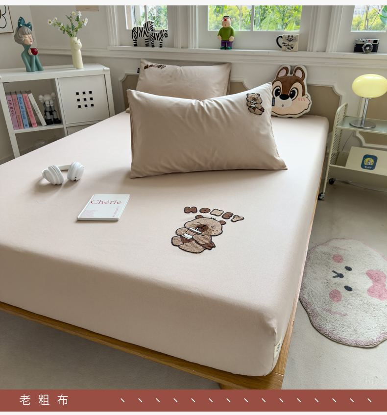 (总)席世家 2025新款全棉纯棉水洗棉床笠单床笠,水洗棉-呆萌熊,水洗棉-彩虹,水洗棉-可爱兔,水洗棉-盼盼,水洗棉-曲奇,水洗棉-小黑猫,水洗棉-星愿