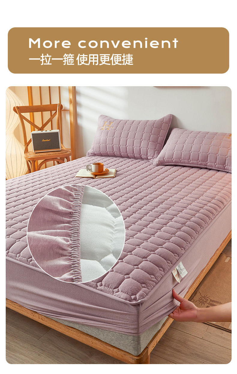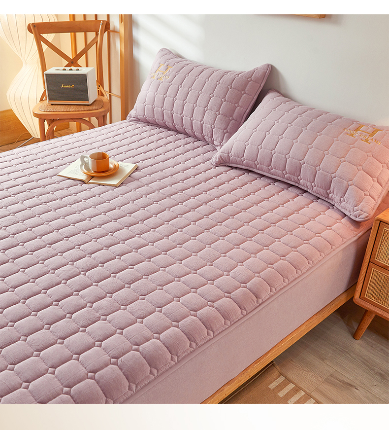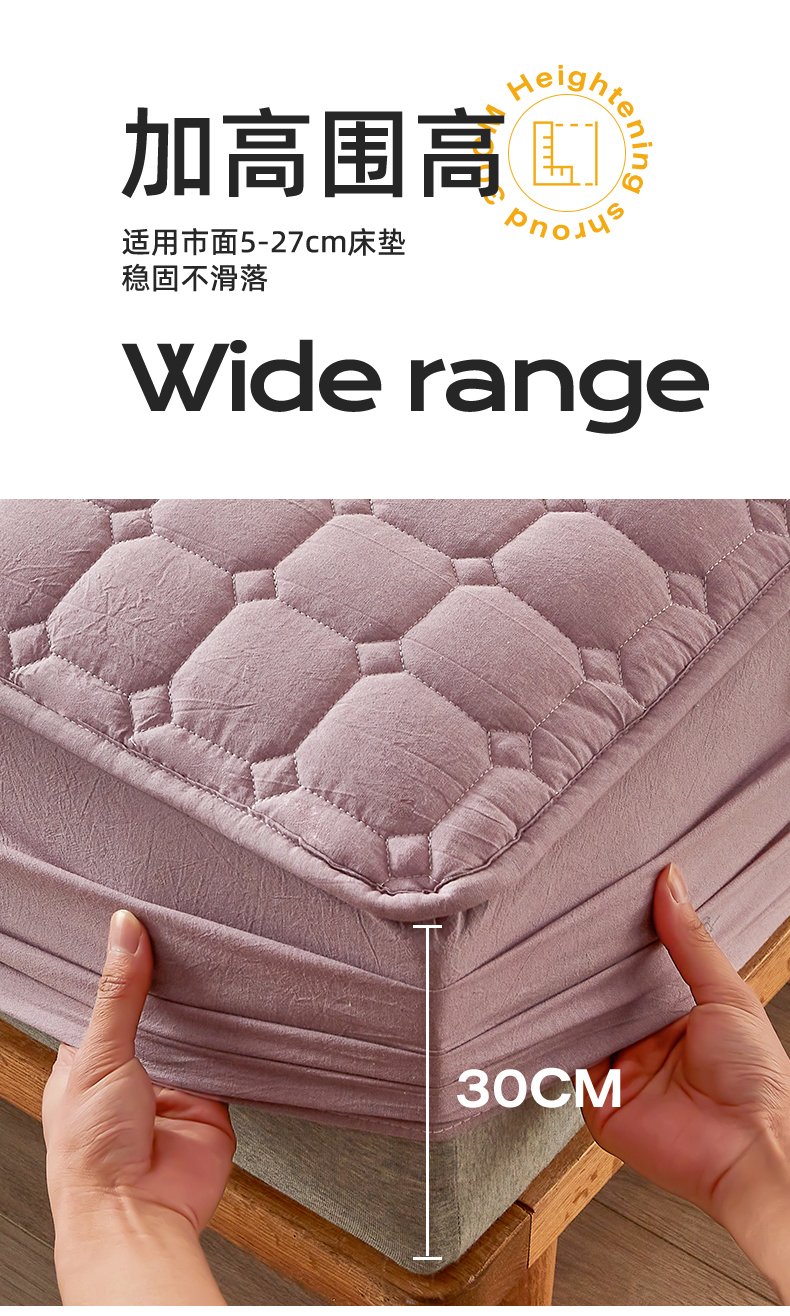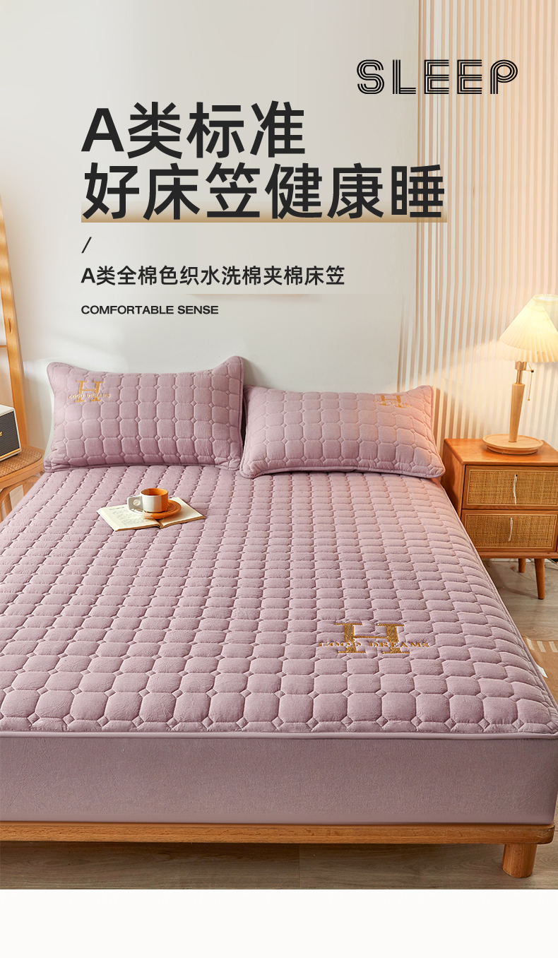 恒爱家纺 2025新款H系列全棉色织水洗棉床笠 浅紫