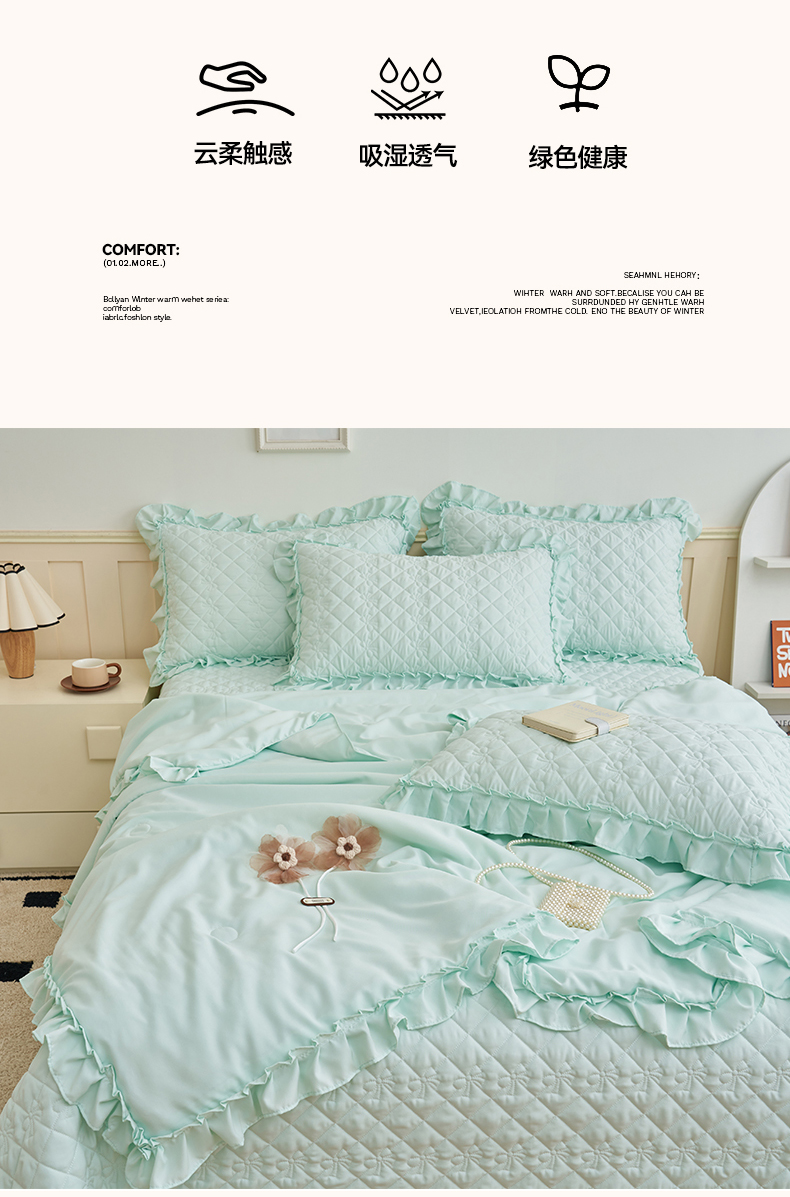 (总)恒爱家纺 2025新款牛奶绒贴布绣夹棉床裙四件套,豆沙红,浪漫紫,天空蓝,温馨粉,象牙白
