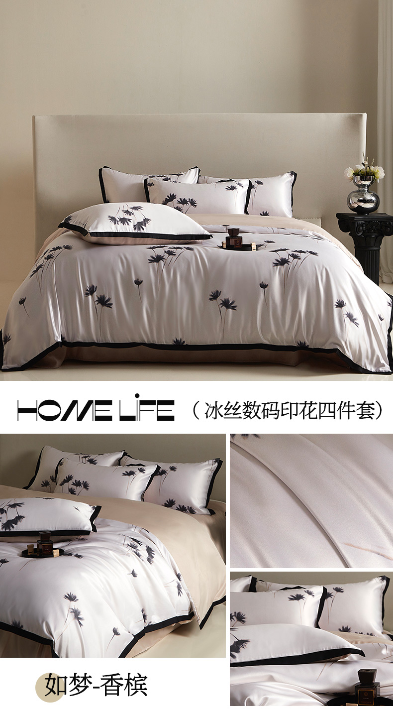 商品名称:优悦 2025新款冰丝数码印花四件套 如梦-香槟