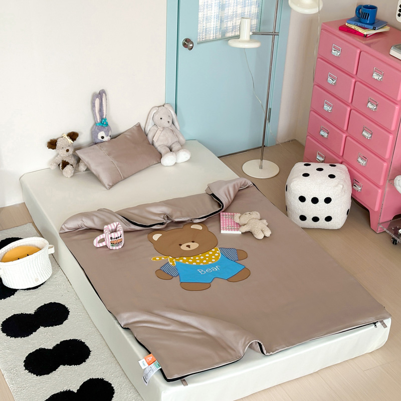 (总)喜多兔儿童家纺 2025春夏新款小软萌贴布绣纱布被,粉色软萌小兔,卡其色软萌小熊,蓝色软萌小象,绿色软萌恐龙,组合图仅供展示