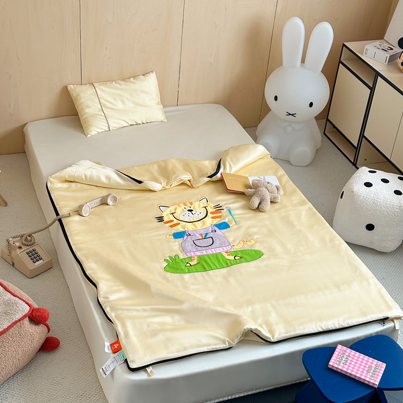 (总)喜多兔儿童家纺 2025新款小惊喜儿童蚕丝蛋白天丝抗菌夏凉被,粉色礼貌小鸭,粉色围裙小兔宝,黄色多彩小狗,黄色画画小猫,灰蓝色活动熊猫,灰蓝色运动小狮子,卡其色勤劳小马,卡其色围兜小熊,绿色萌萌恐龙,绿色微笑小猴