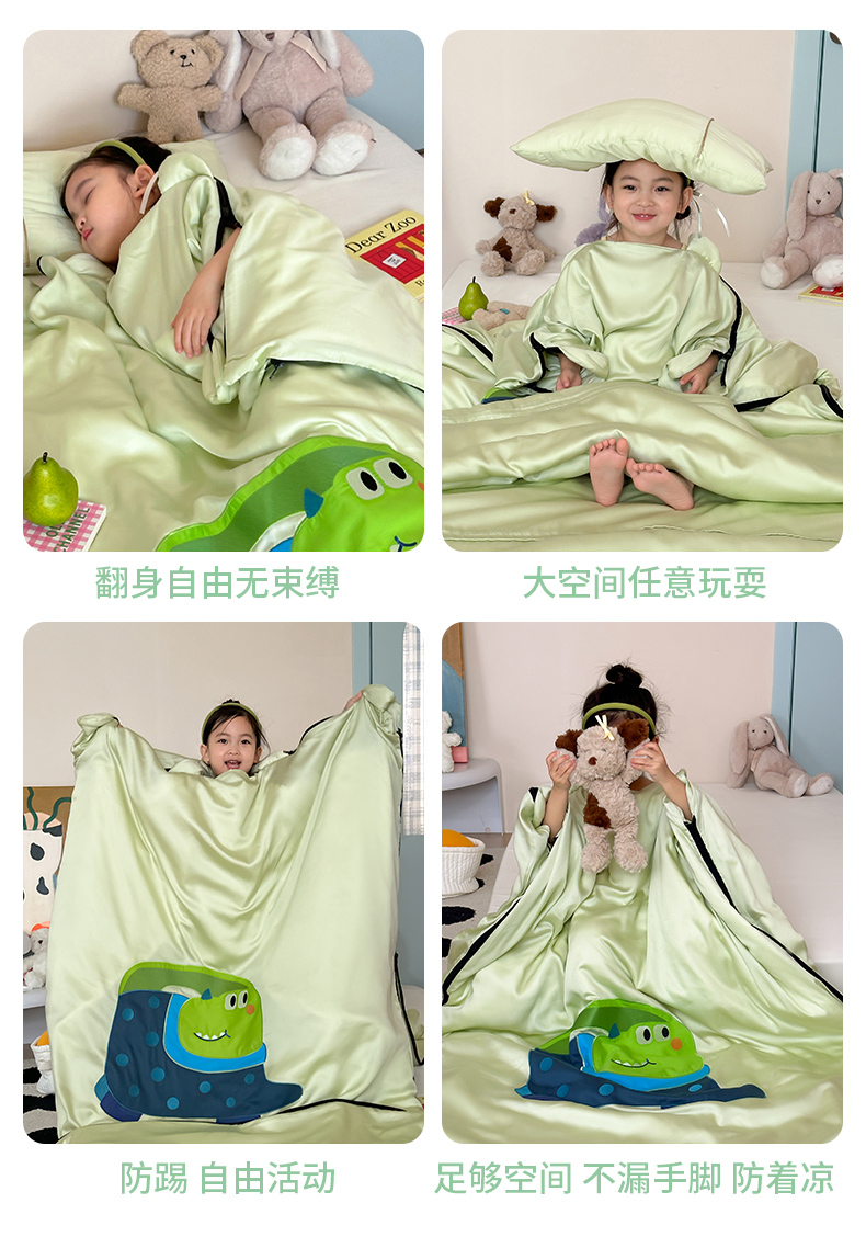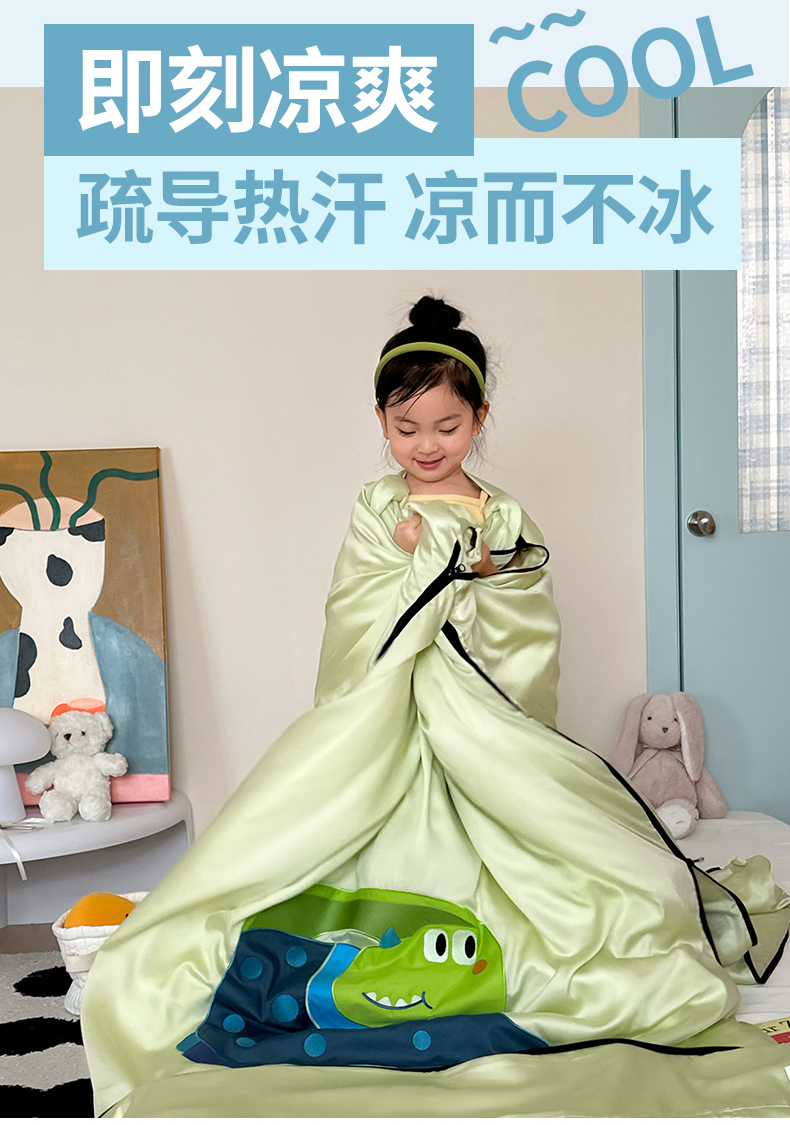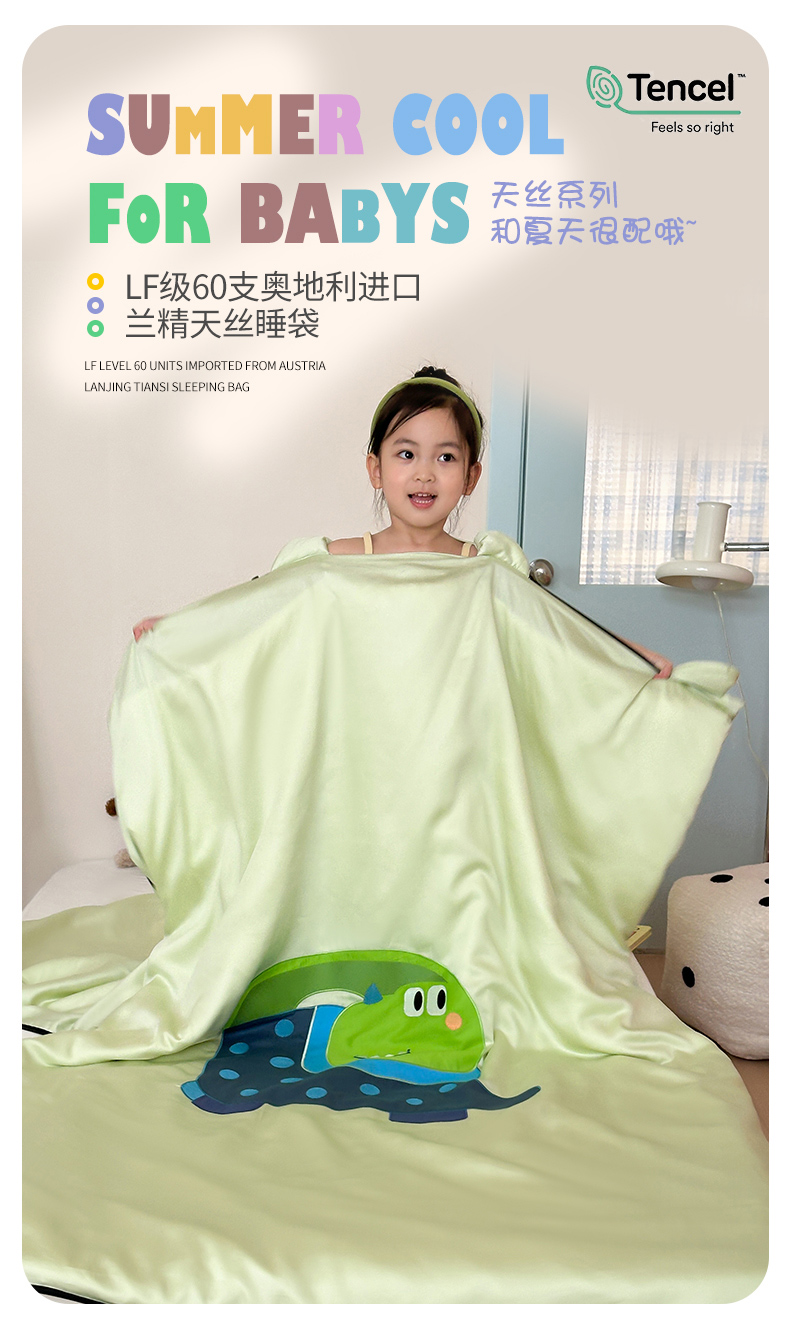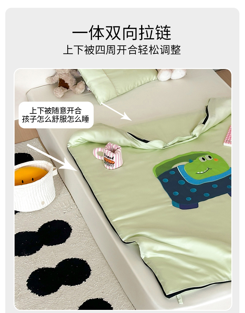 当前位置: 91家纺网 > 商品网购 > 婴童用品 > 婴童睡袋/防踢被 > 喜多兔儿童家纺 2025新款60S兰精天丝睡袋防踢被 绿色萌萌恐龙